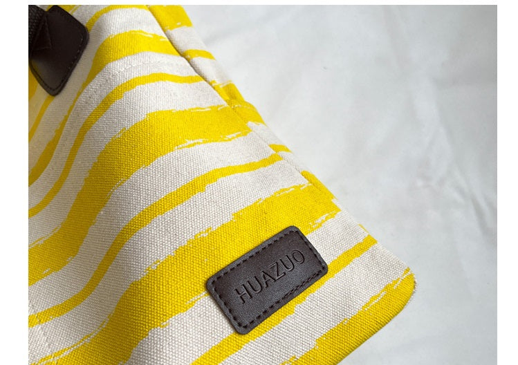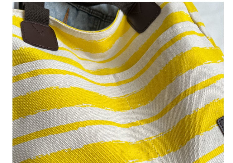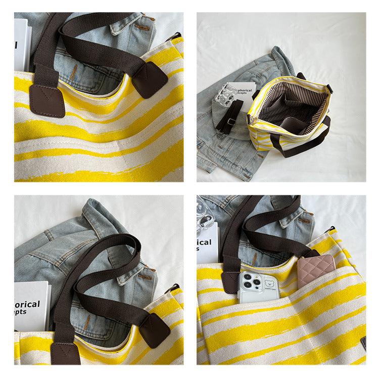 Women Striped Canvas Shoulder Bag Large Storage Handbags