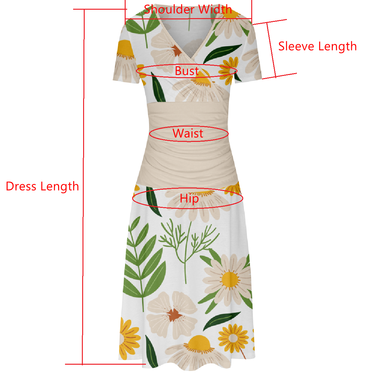 Wild Flower Floral Pattern Print Dress Bodycon Short Sleeve Asymmetrical V-Neckline Slim Waistline