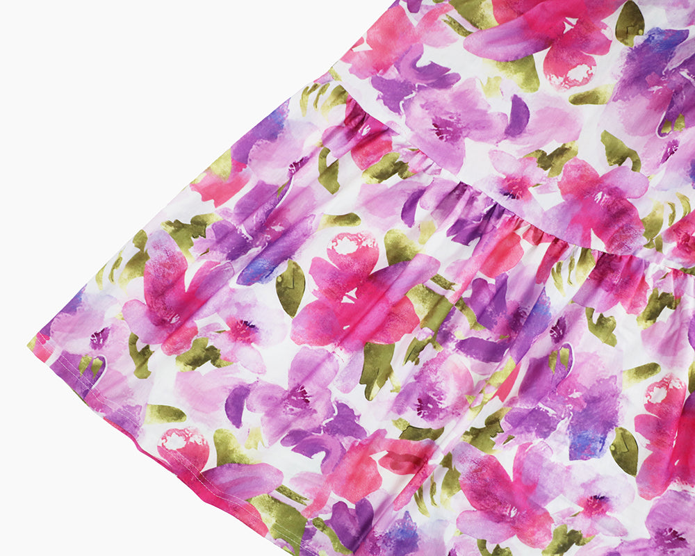 DetailColor: MulticolorStyle: BohoPattern Type: FloralDetails: Tiered LayerType: A LineNeckline: V neckSleeve Length: Short SleeveWaist Line: High WaistHem Shaped: Layered/TieredLength: LongFit Type: Regular FitFabric: Non-StretchMaterial: FabricComposition: 100% PolyesterCare Instructions: Hand wash or professional dry cleanSheer: NoSize Standard: AmericanSize ChartActual Pictures