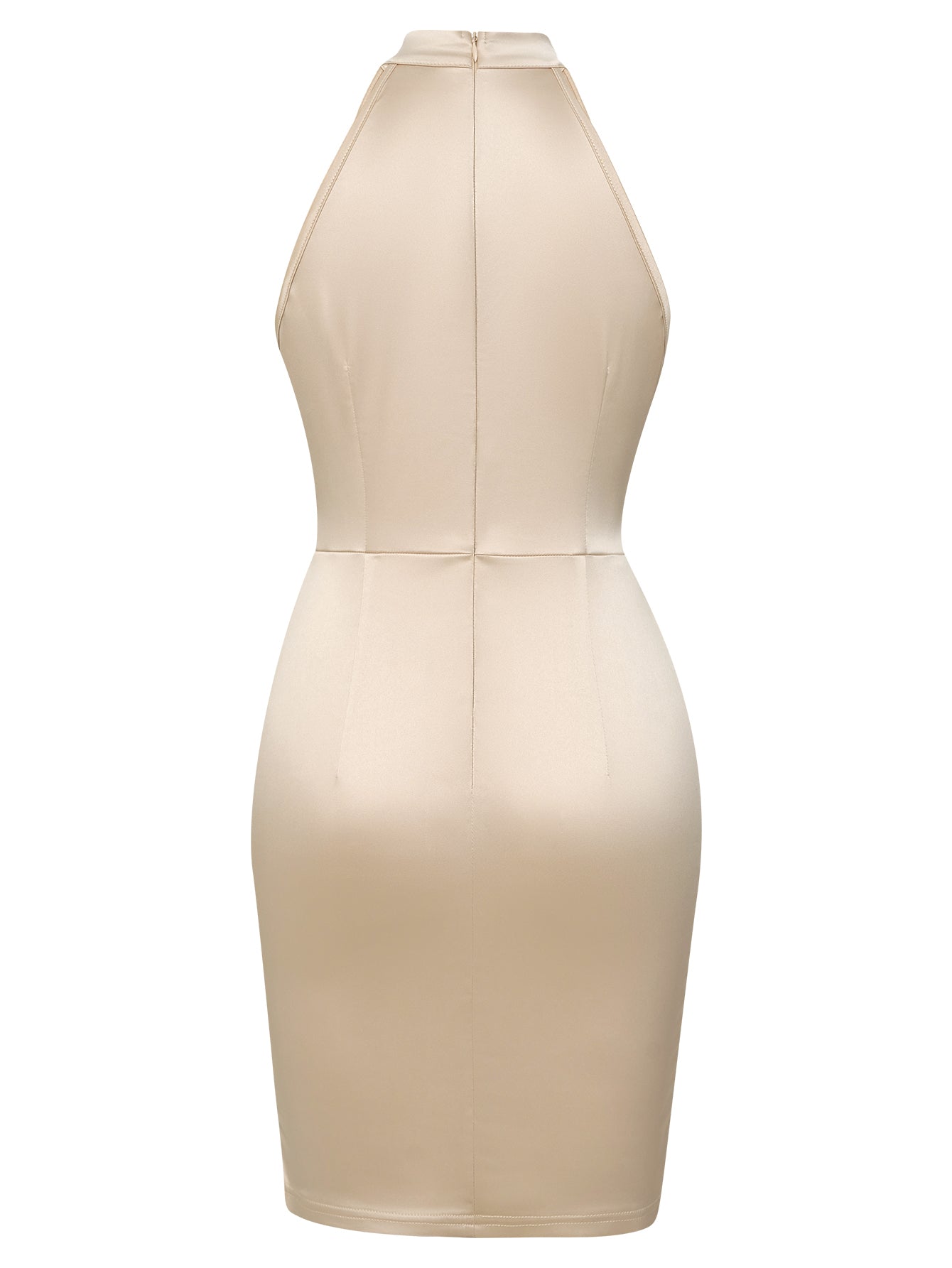 Features: Bodycon Dress. Perfect Dress for Slim Body. Hanging Neckline. Sleeveless. Tie Side. Elegant Dress. Formal Dress.
