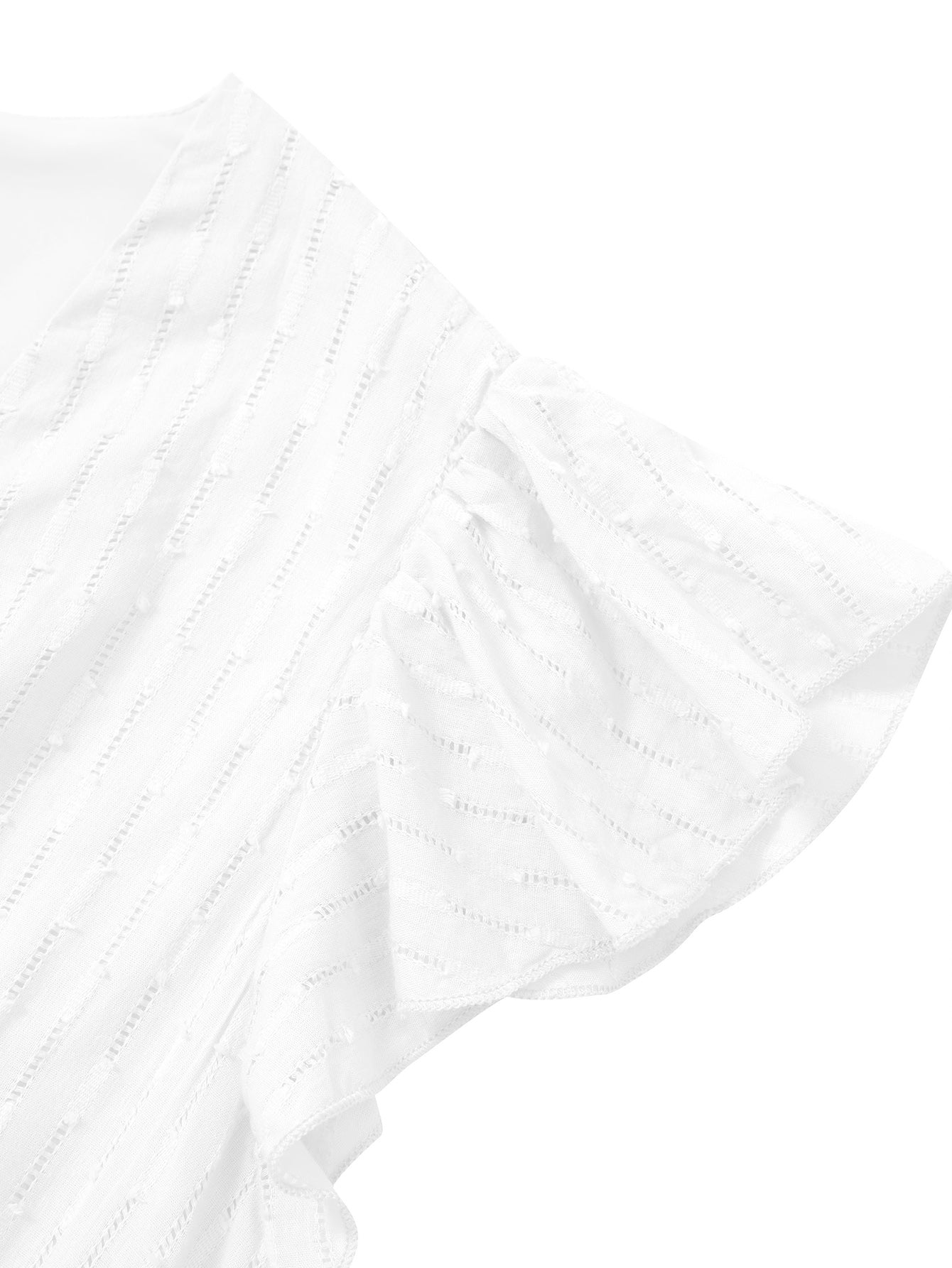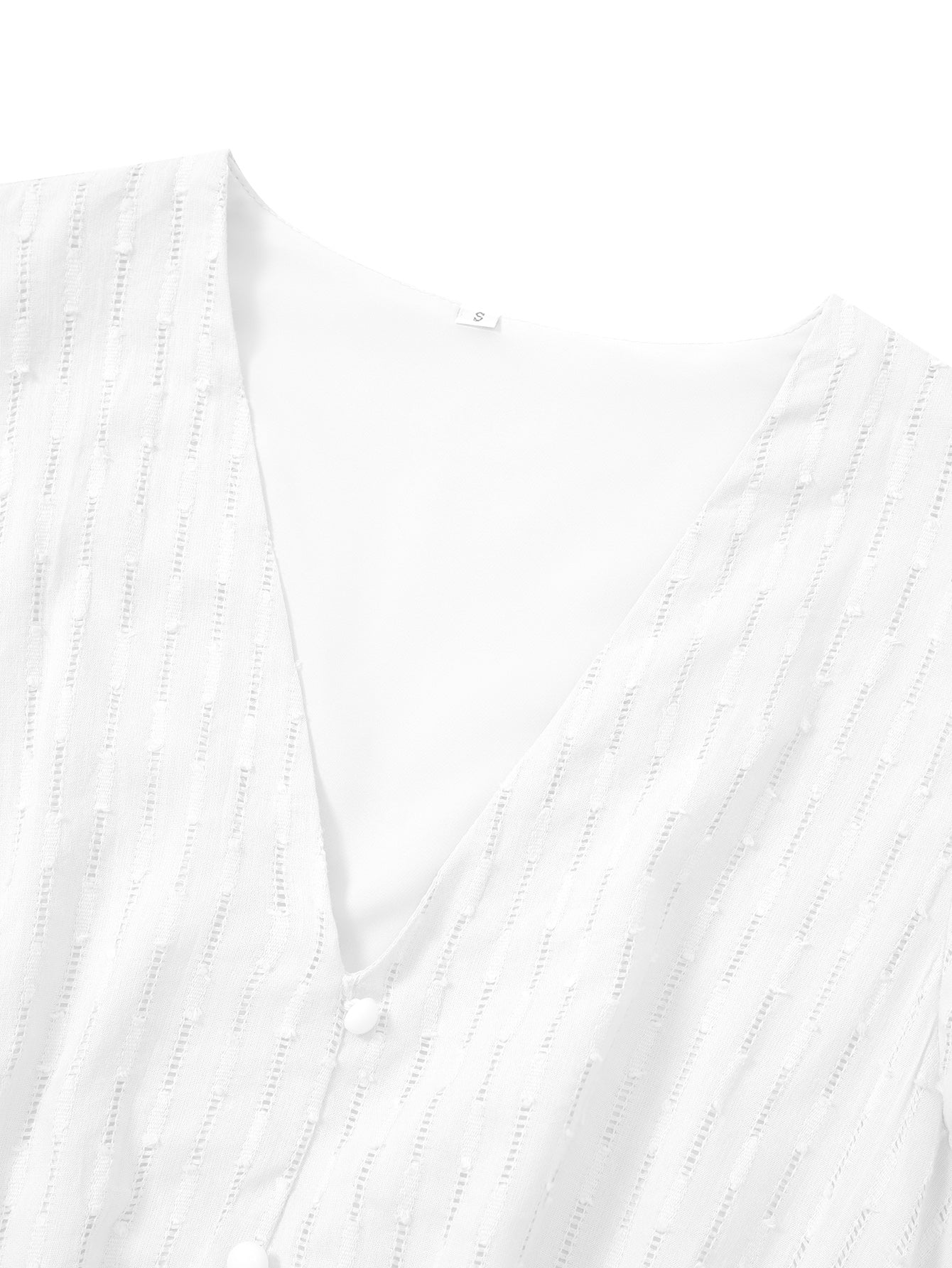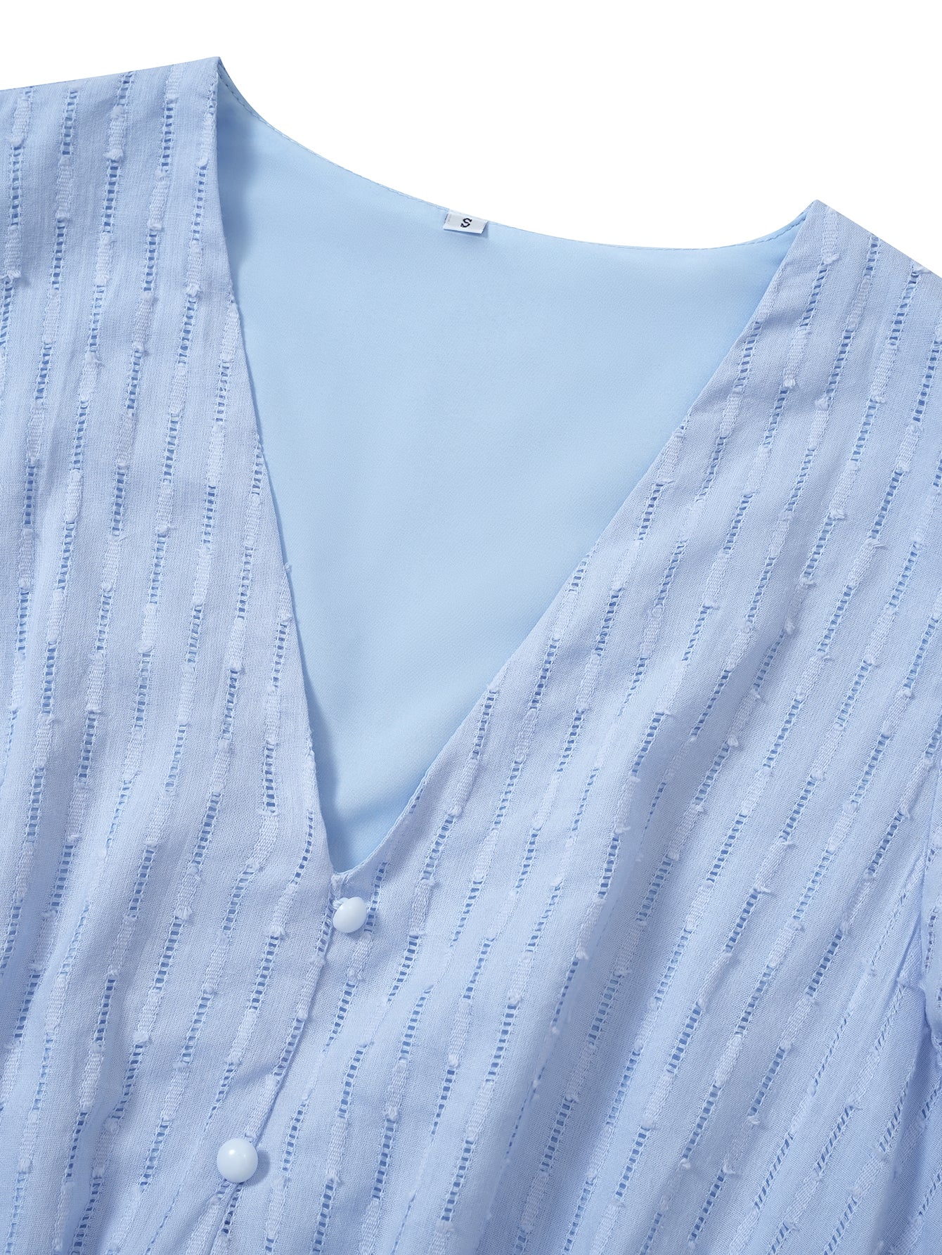 Home / Dress / Women Button Down A Line Dress Ruffle Sleeve V-Neckline