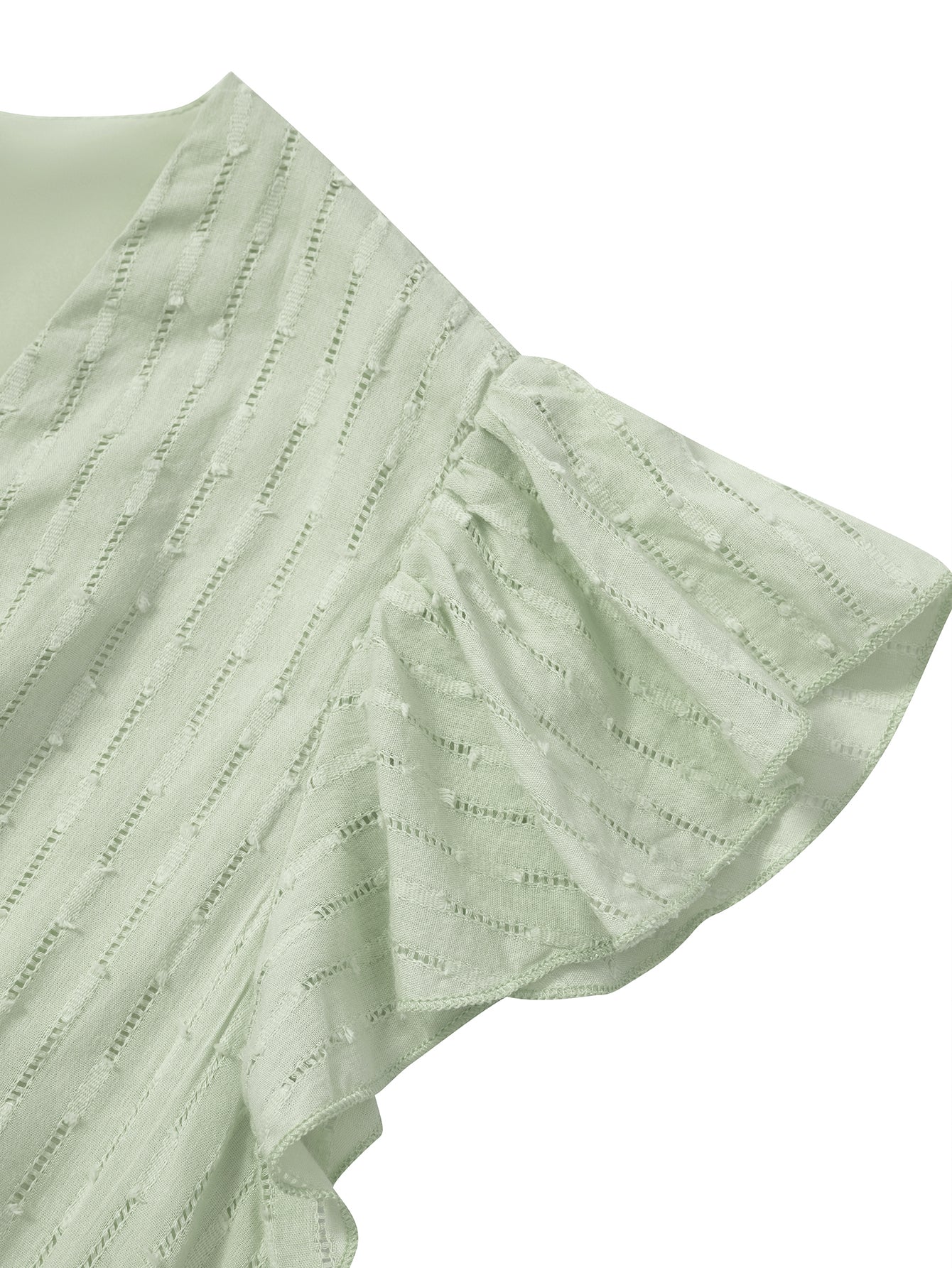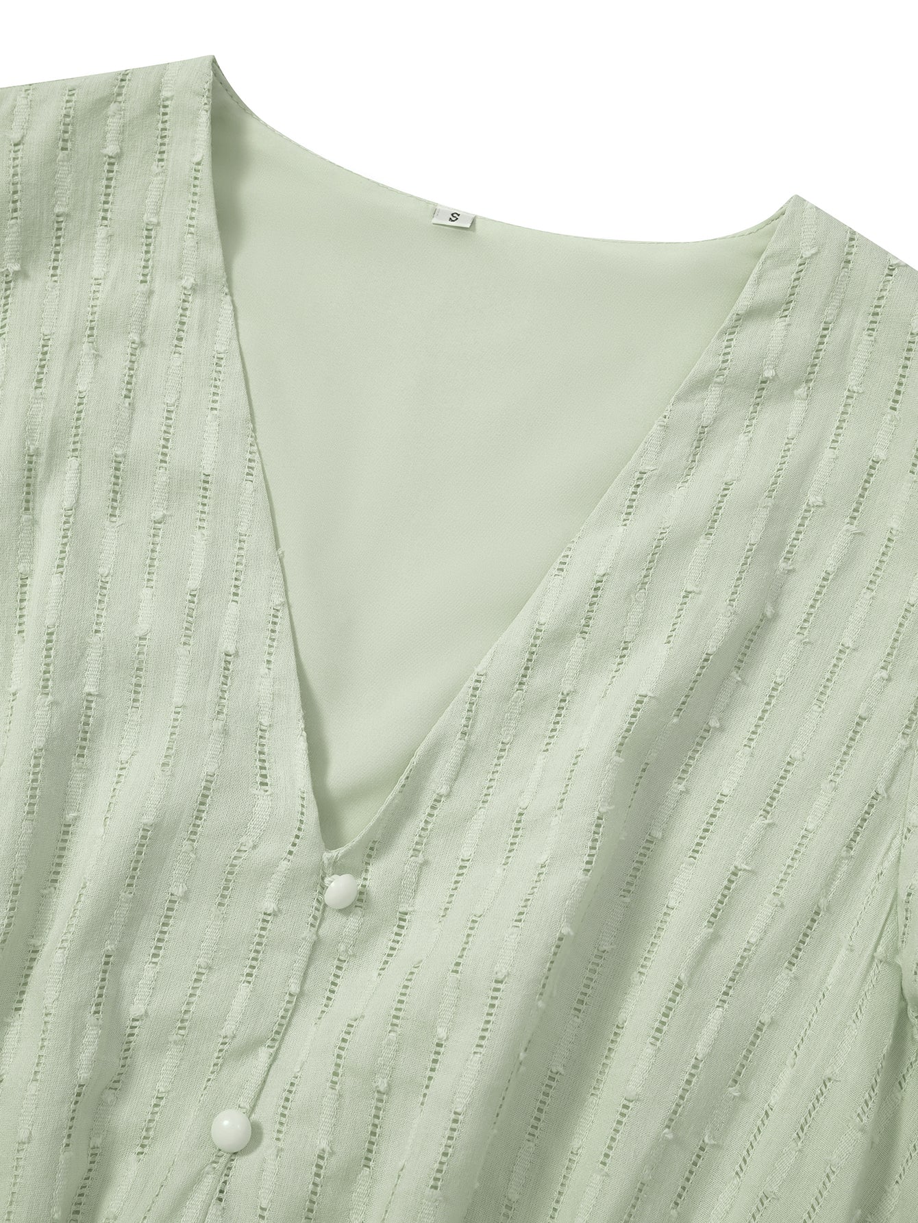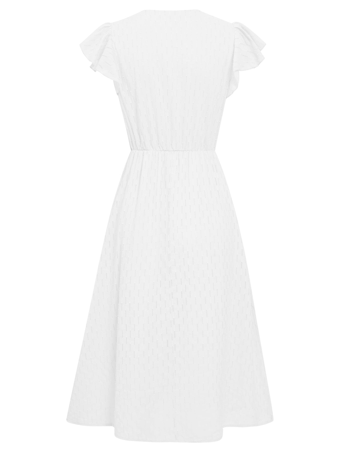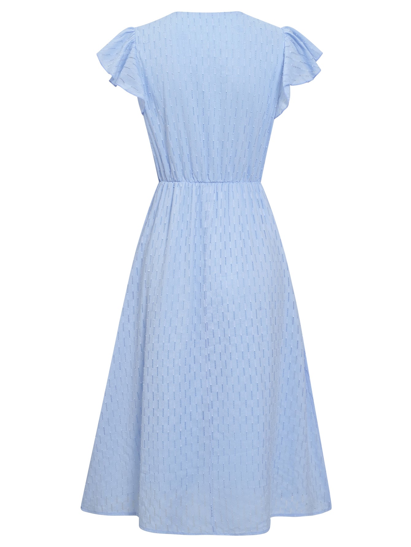Women Button Down A Line Dress Ruffle Sleeve V-Neckline