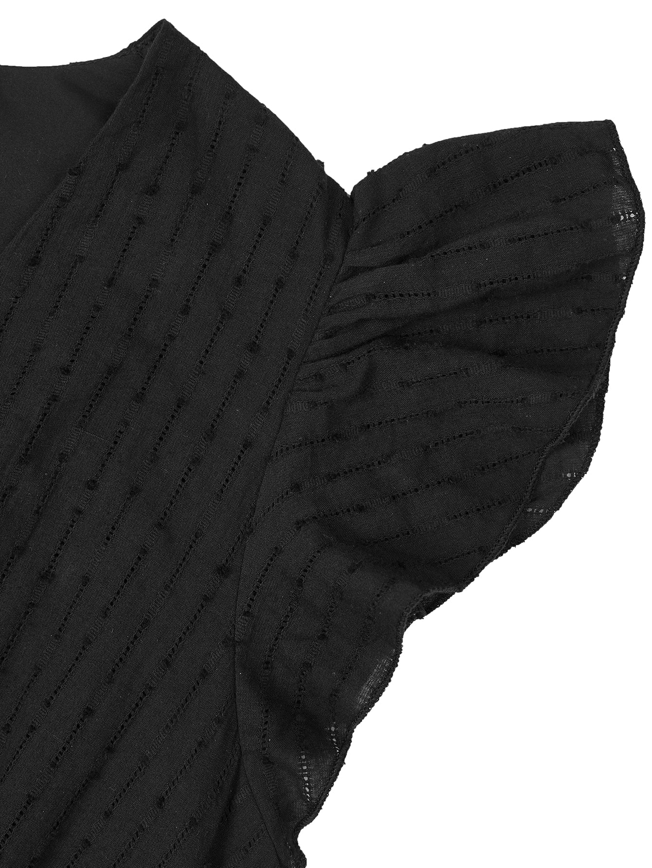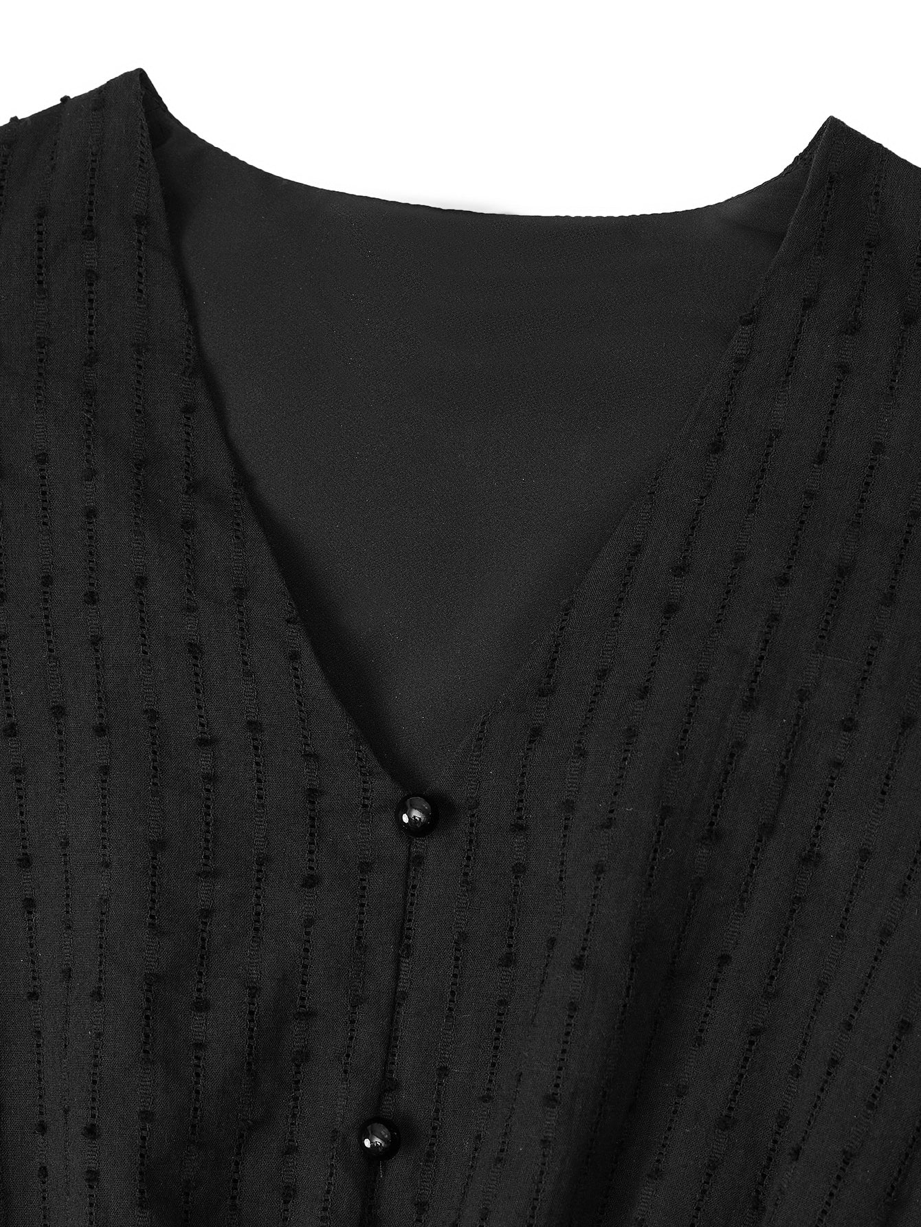 Features: Button Down. A-Line. Ruffle. V-Neckline.