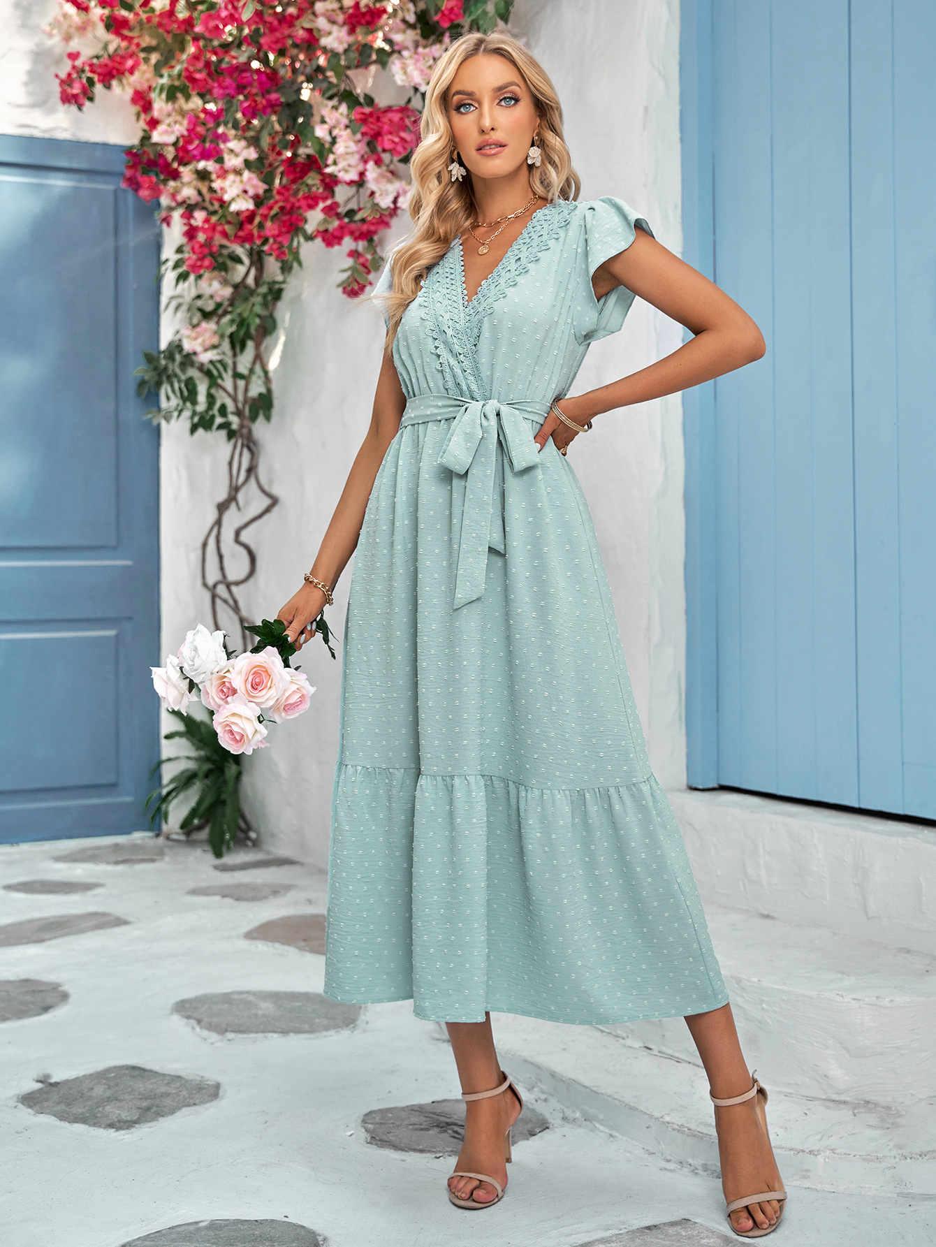 - Lace Floral V-Neckline