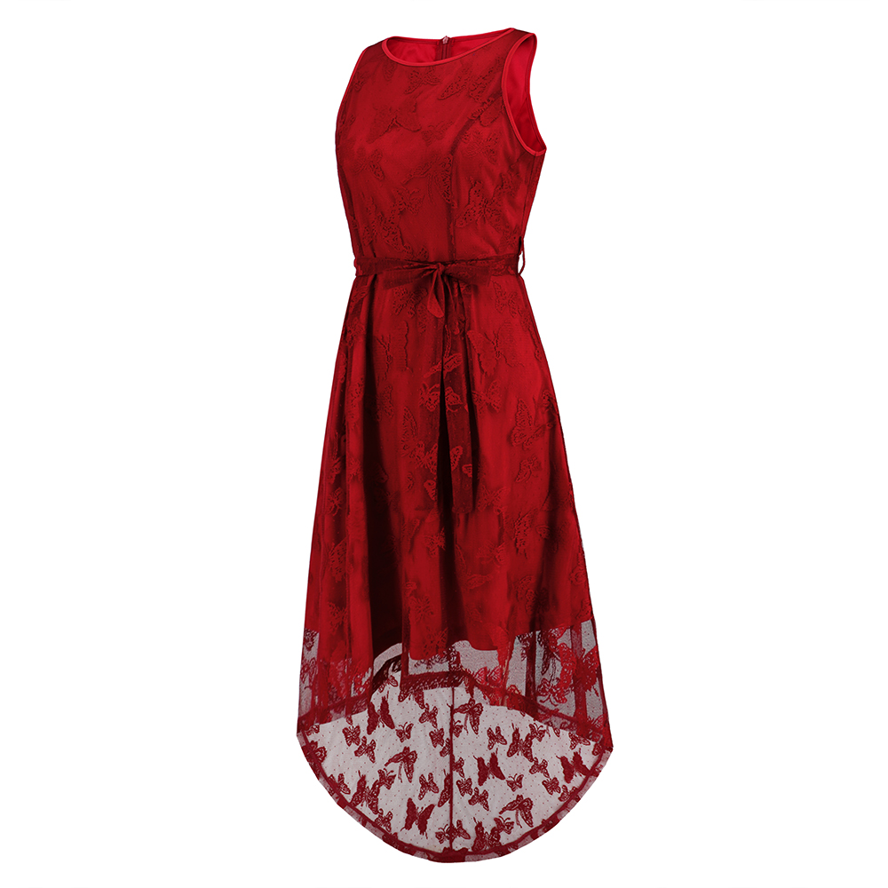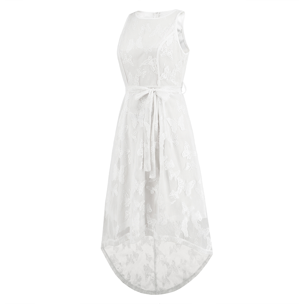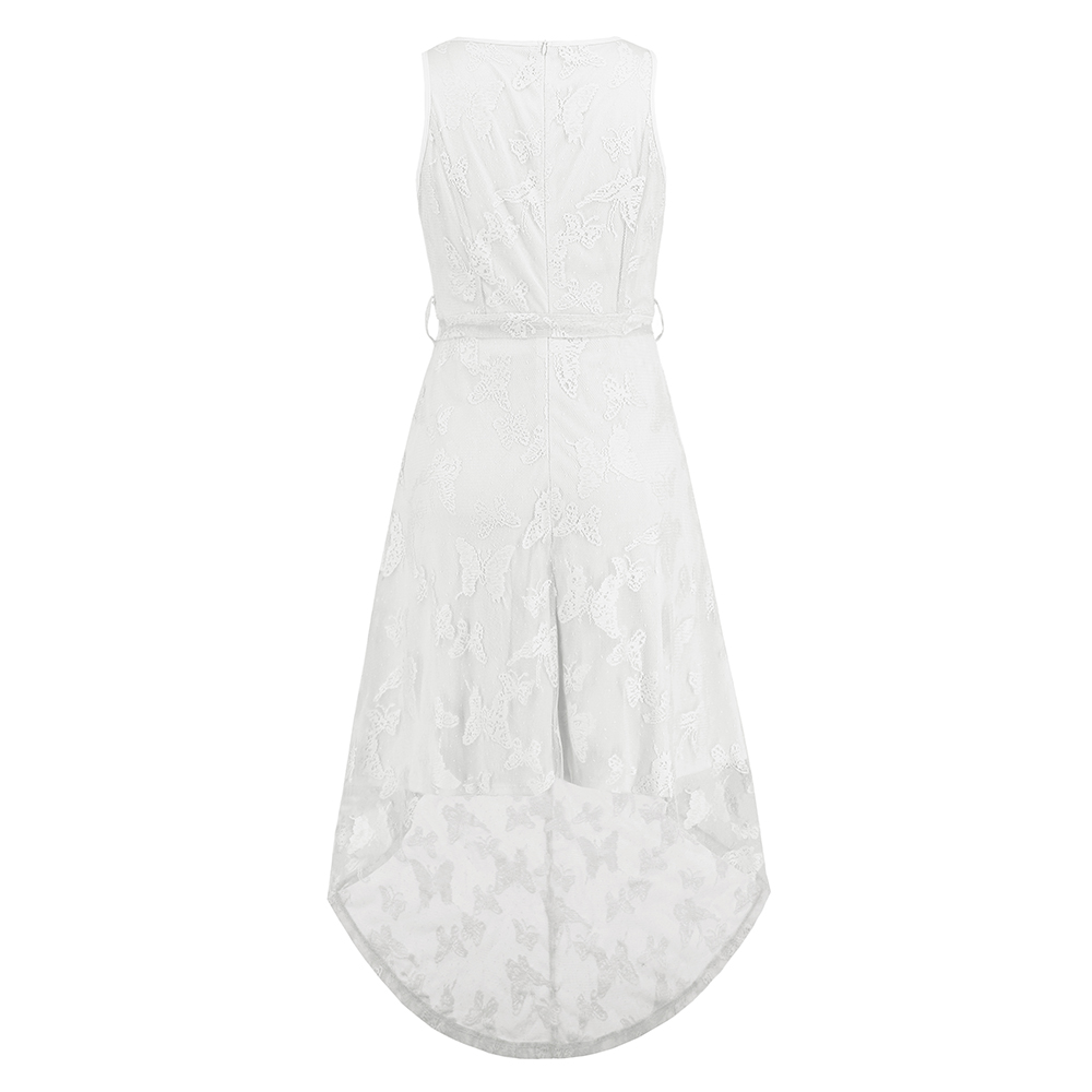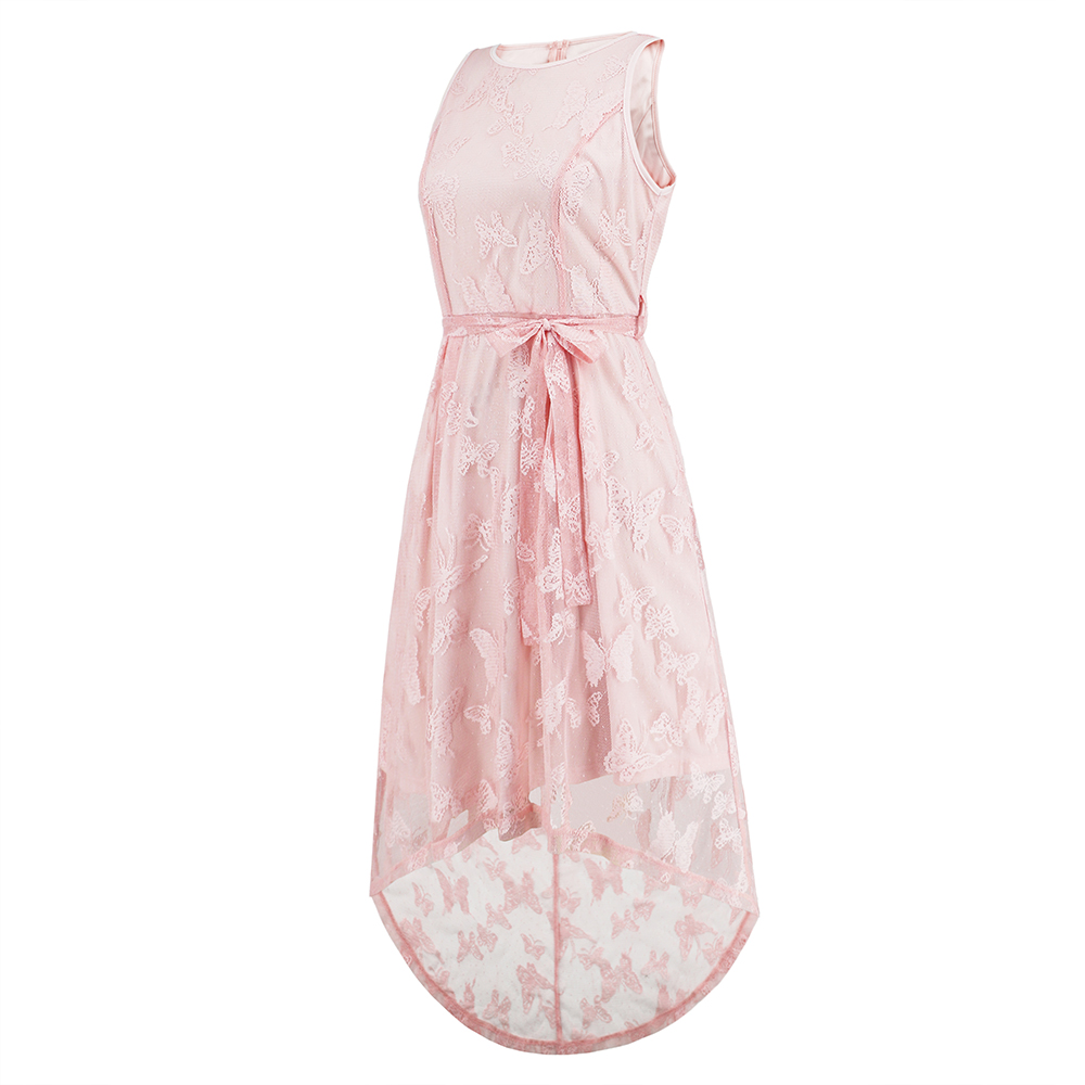 Features: Lace-Mesh. Sleeveless. Tie Front. Irregular HEM.