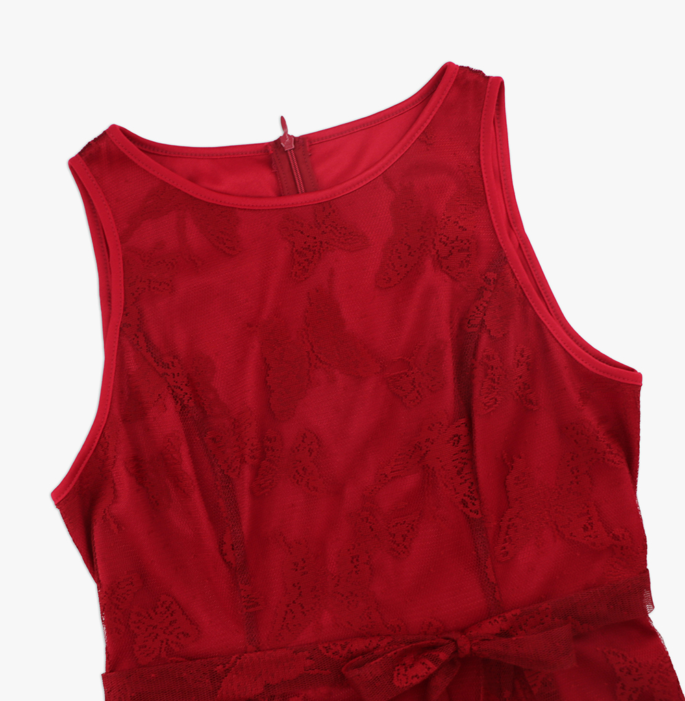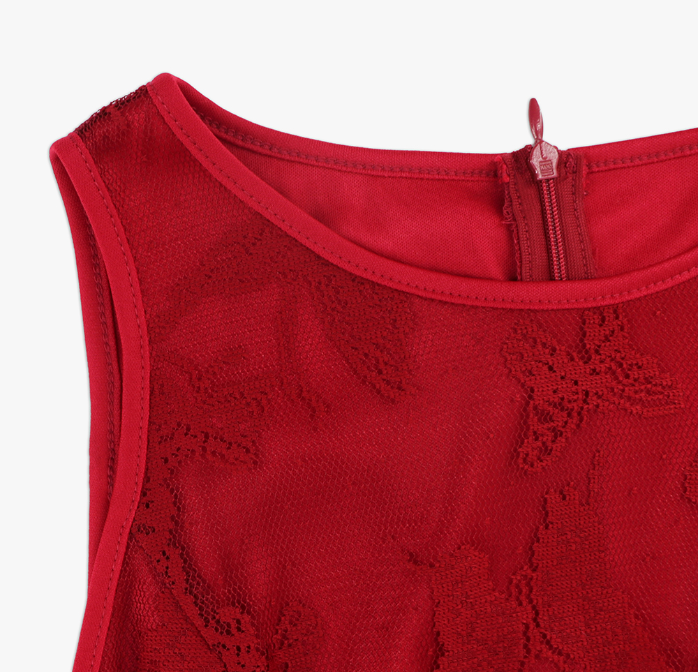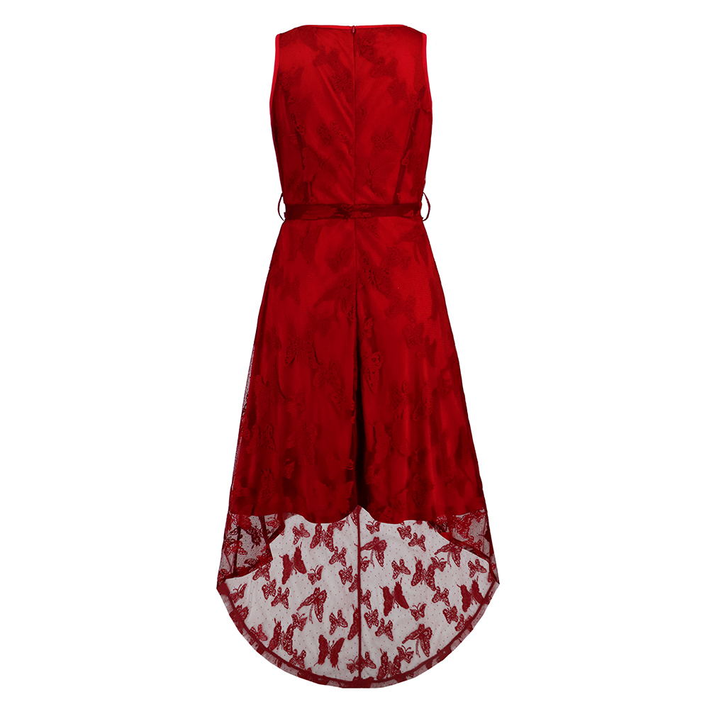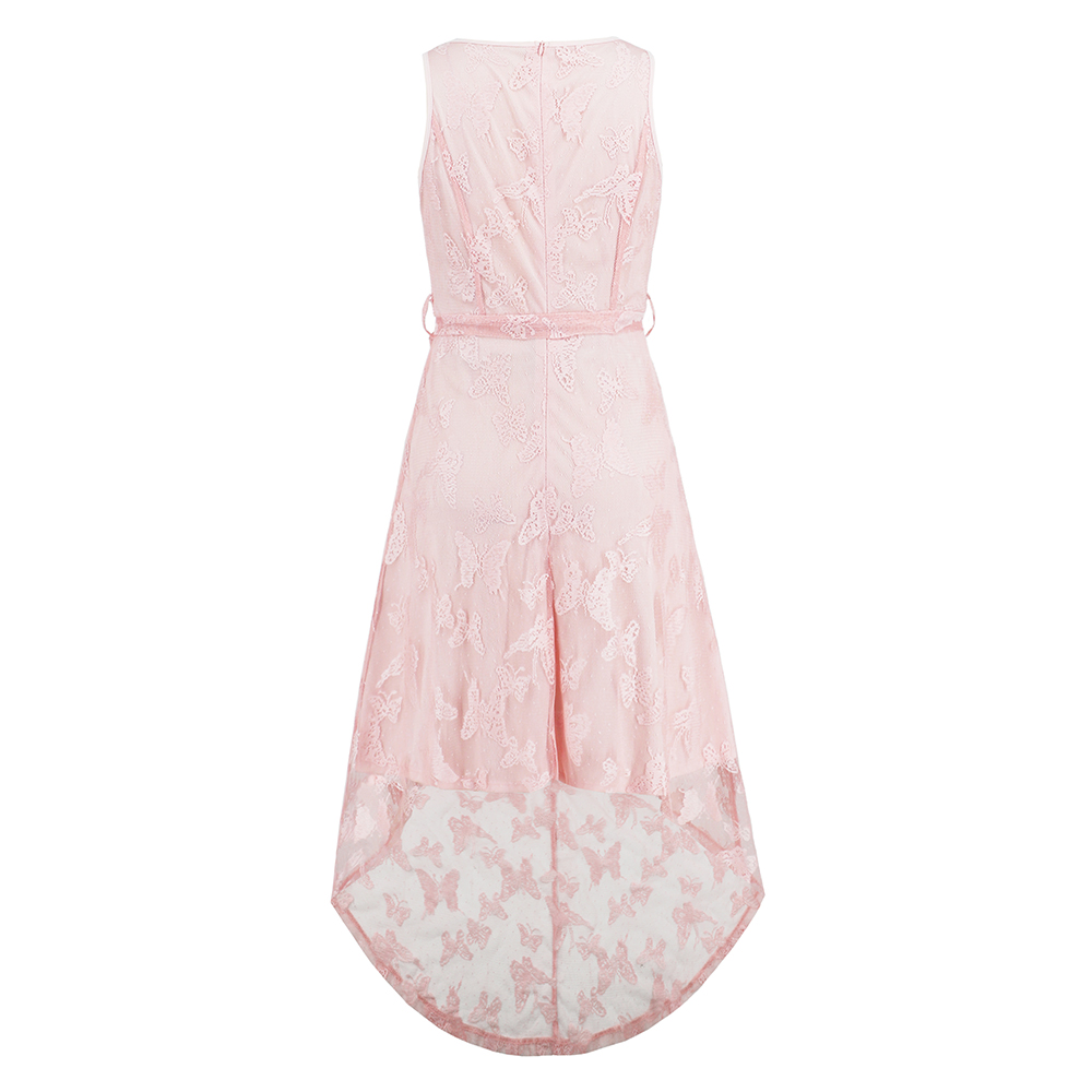 Features: Lace-Mesh. Sleeveless. Tie Front. Irregular HEM.
