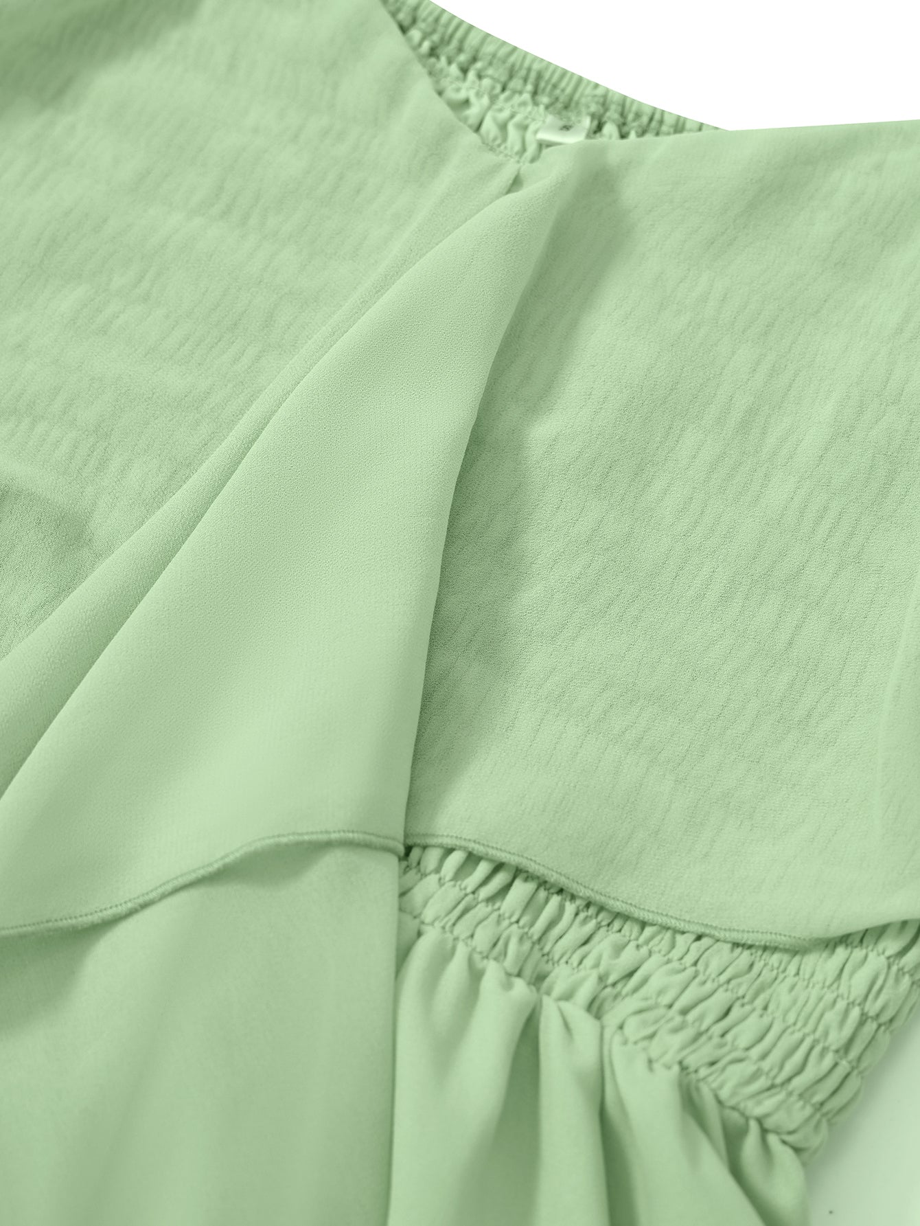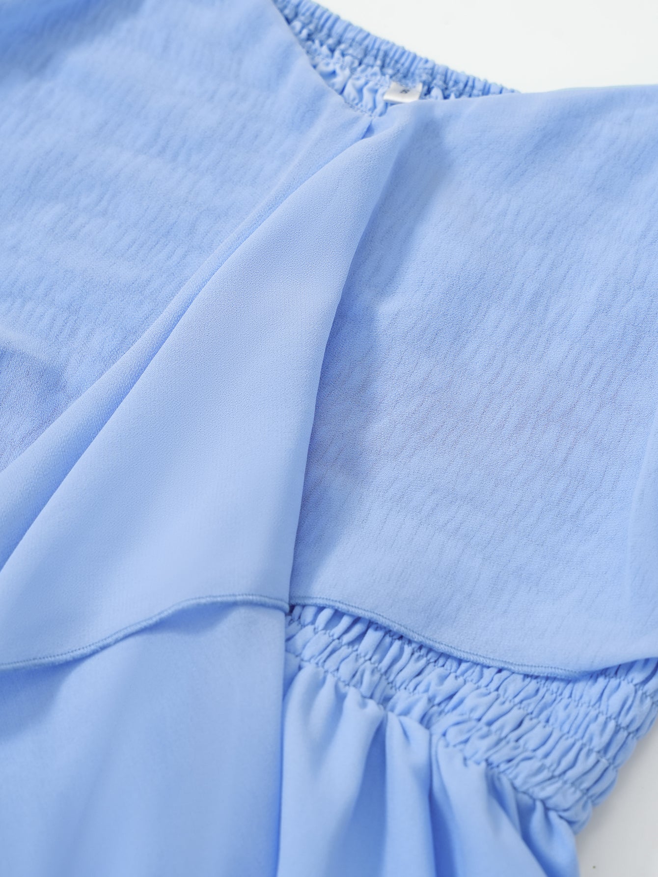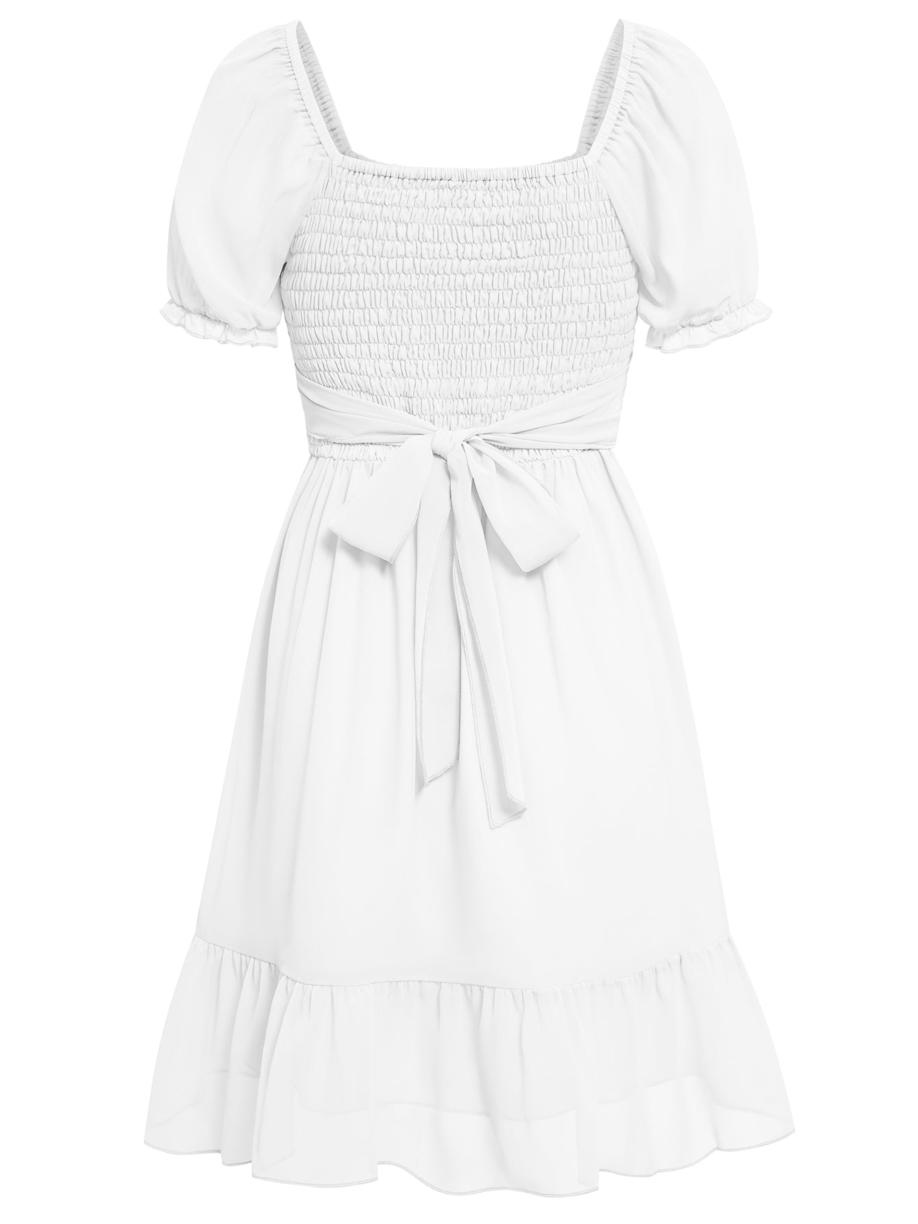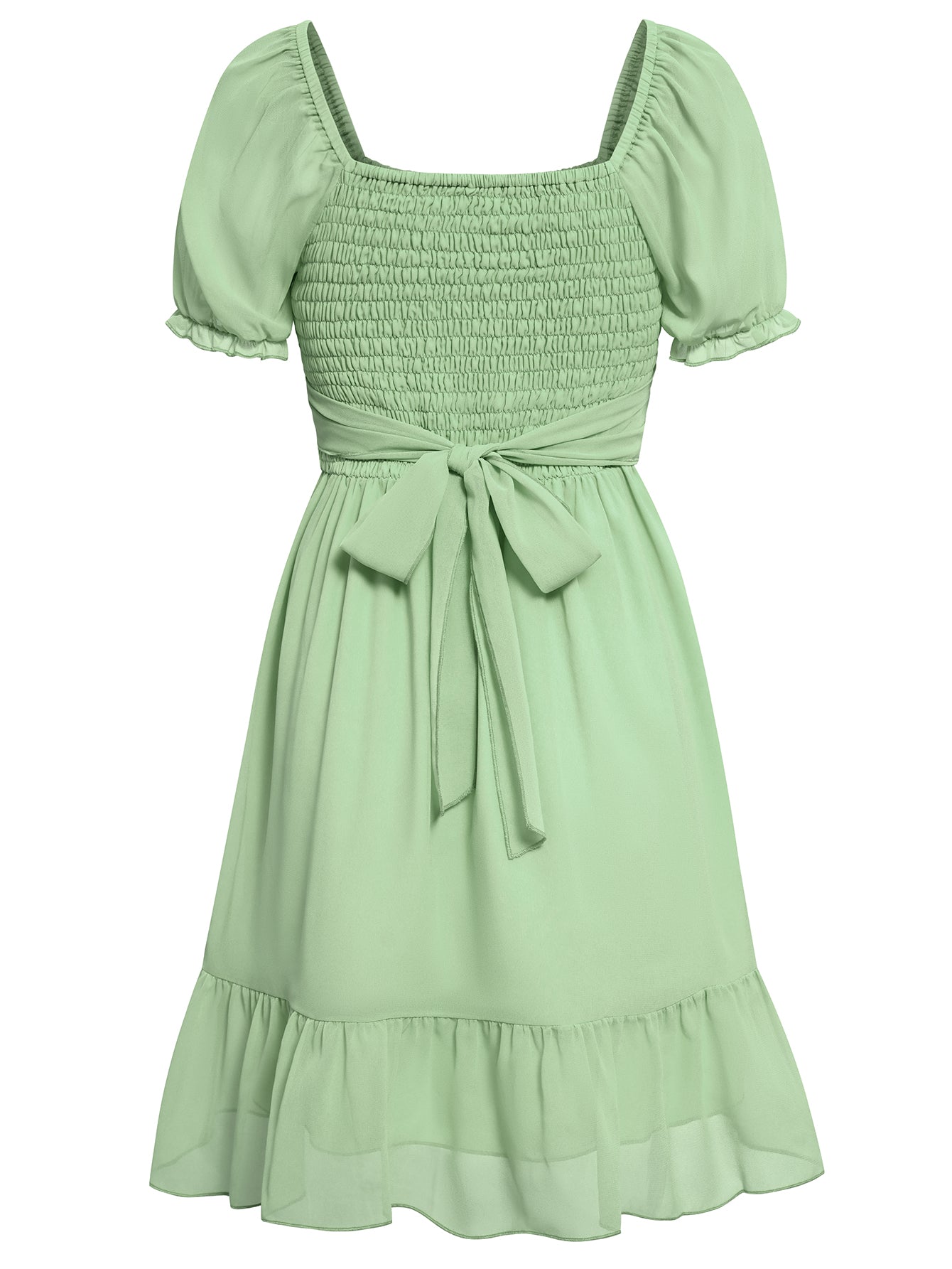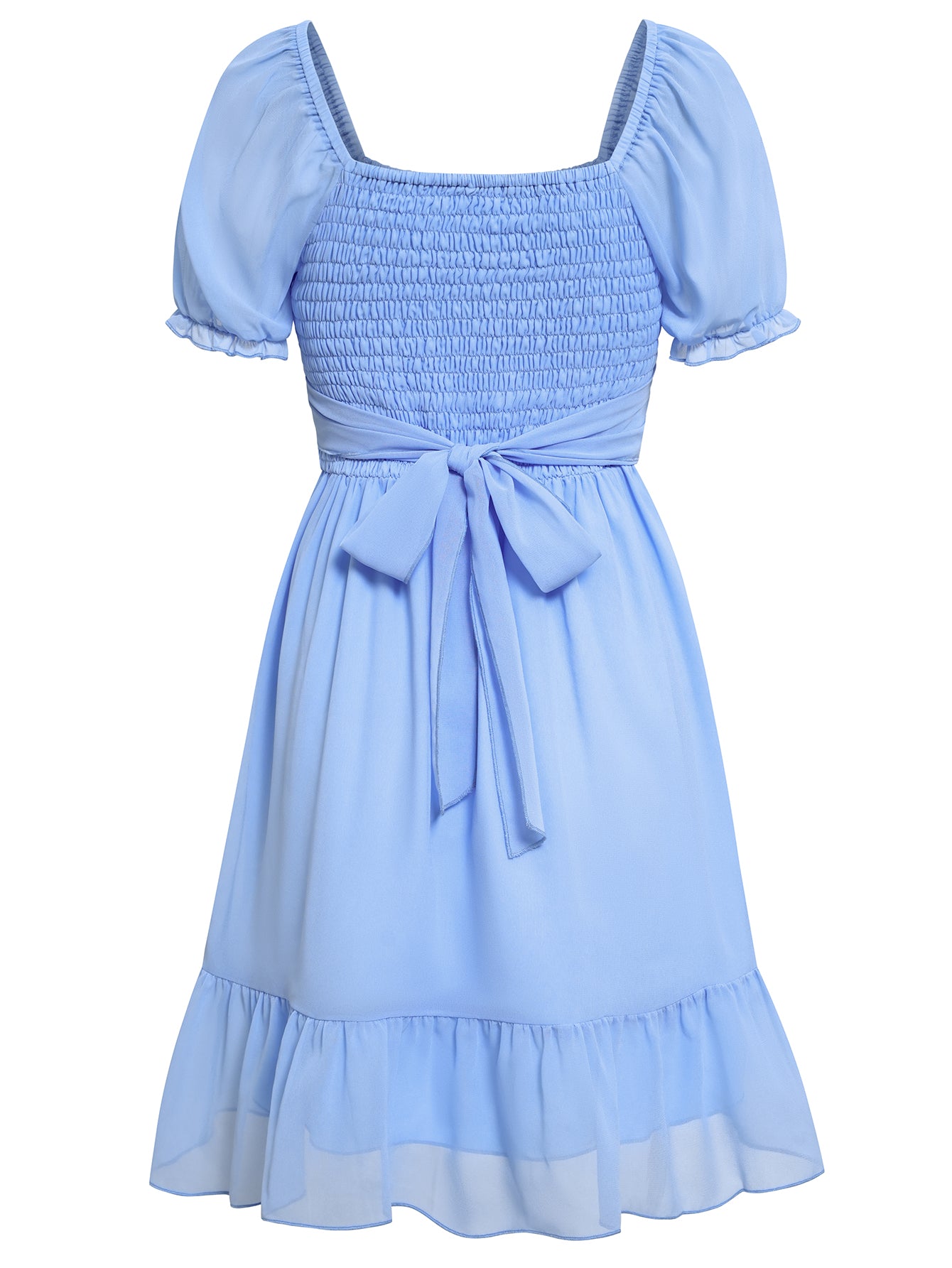 Features: Layered HEM Frenchy Sweatheart Neck Dress. Tie Back.