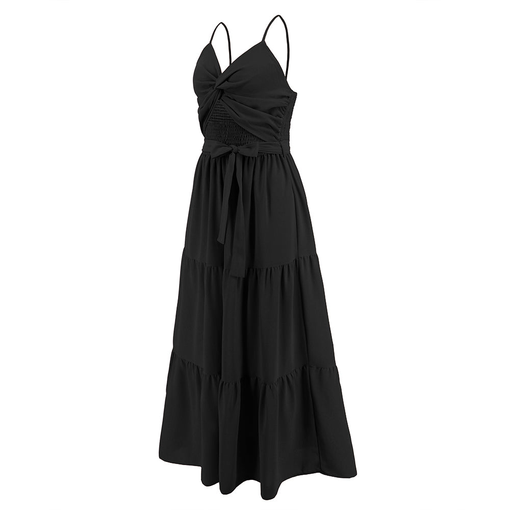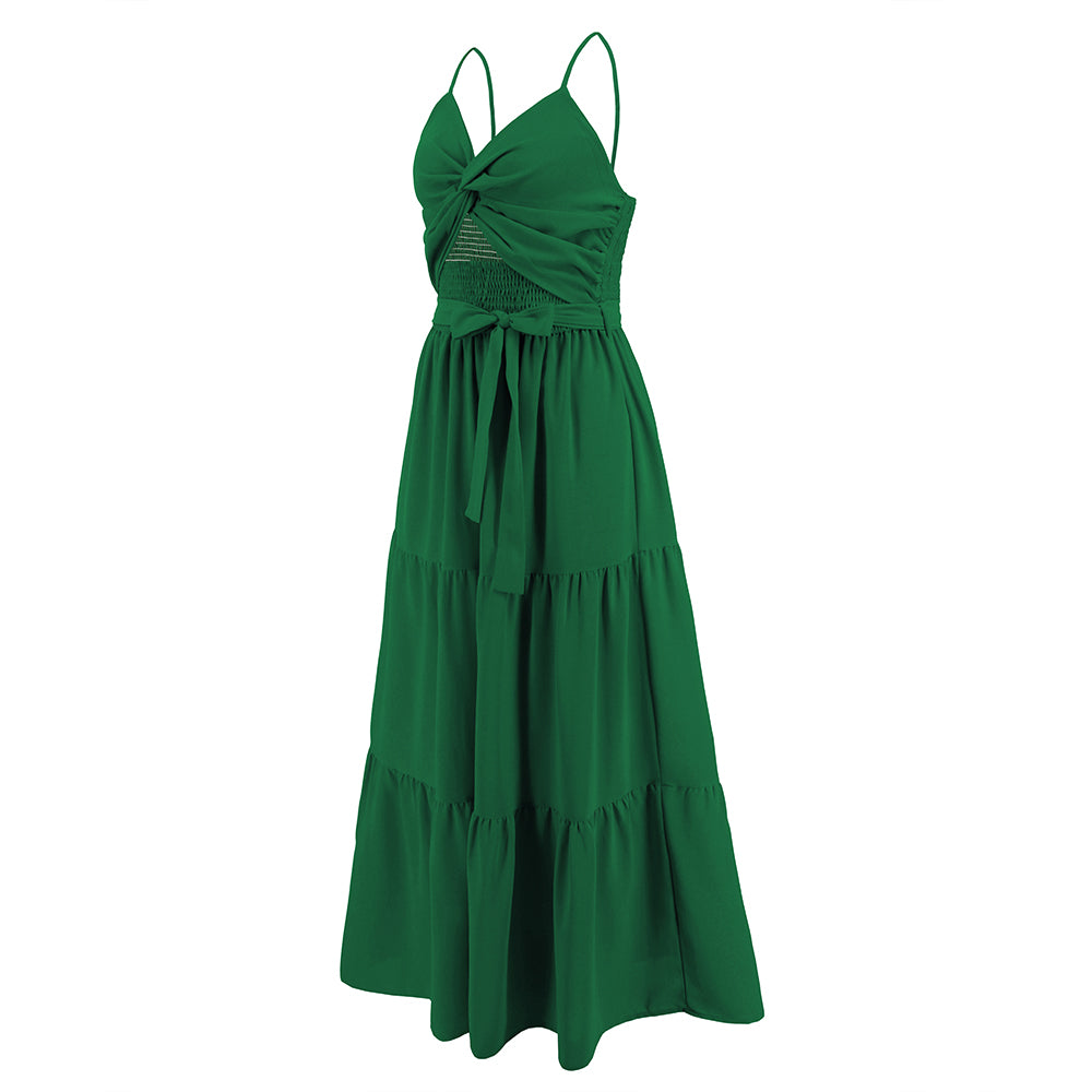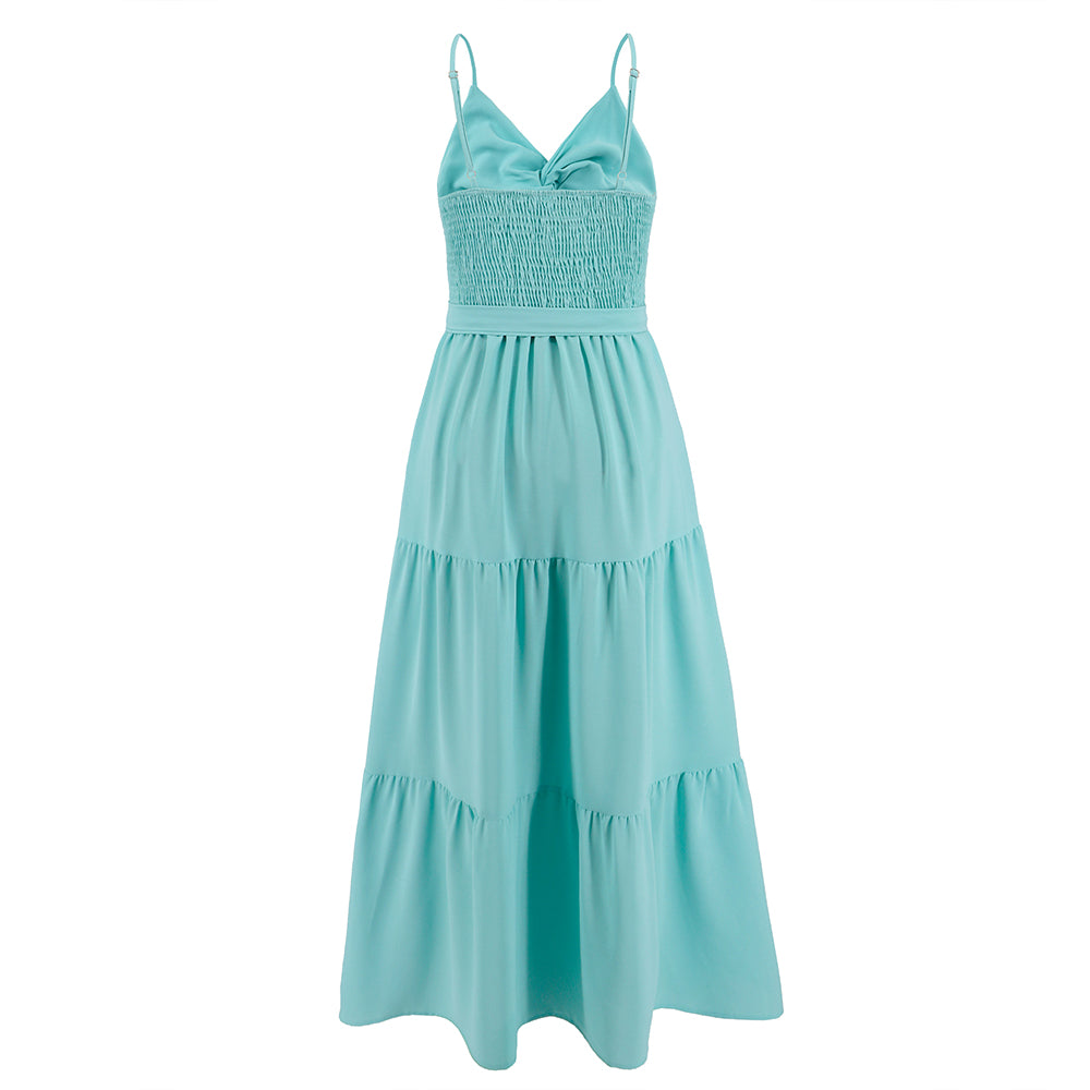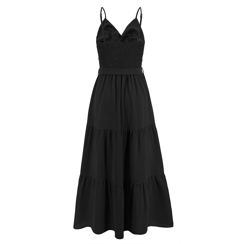 DetailColor: Solid ColorĀType: A LineSleeve Length: SleevelessWaist Line: High WaistLength: LongFit Type: Regular FitFabric: Non-StretchMaterial: FabricComposition: 100% PolyesterCare Instructions: Hand wash or professional dry cleanSheer: NoSize Standard: AmericanSize ChartActual Pictures