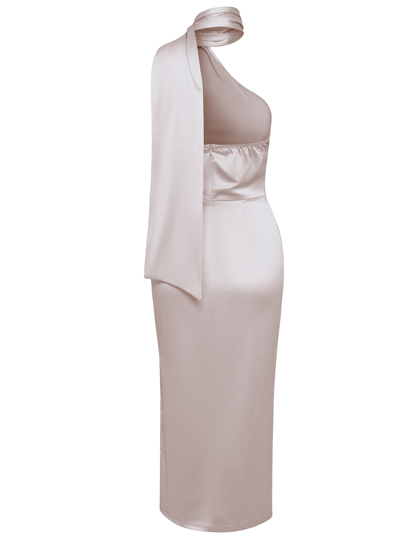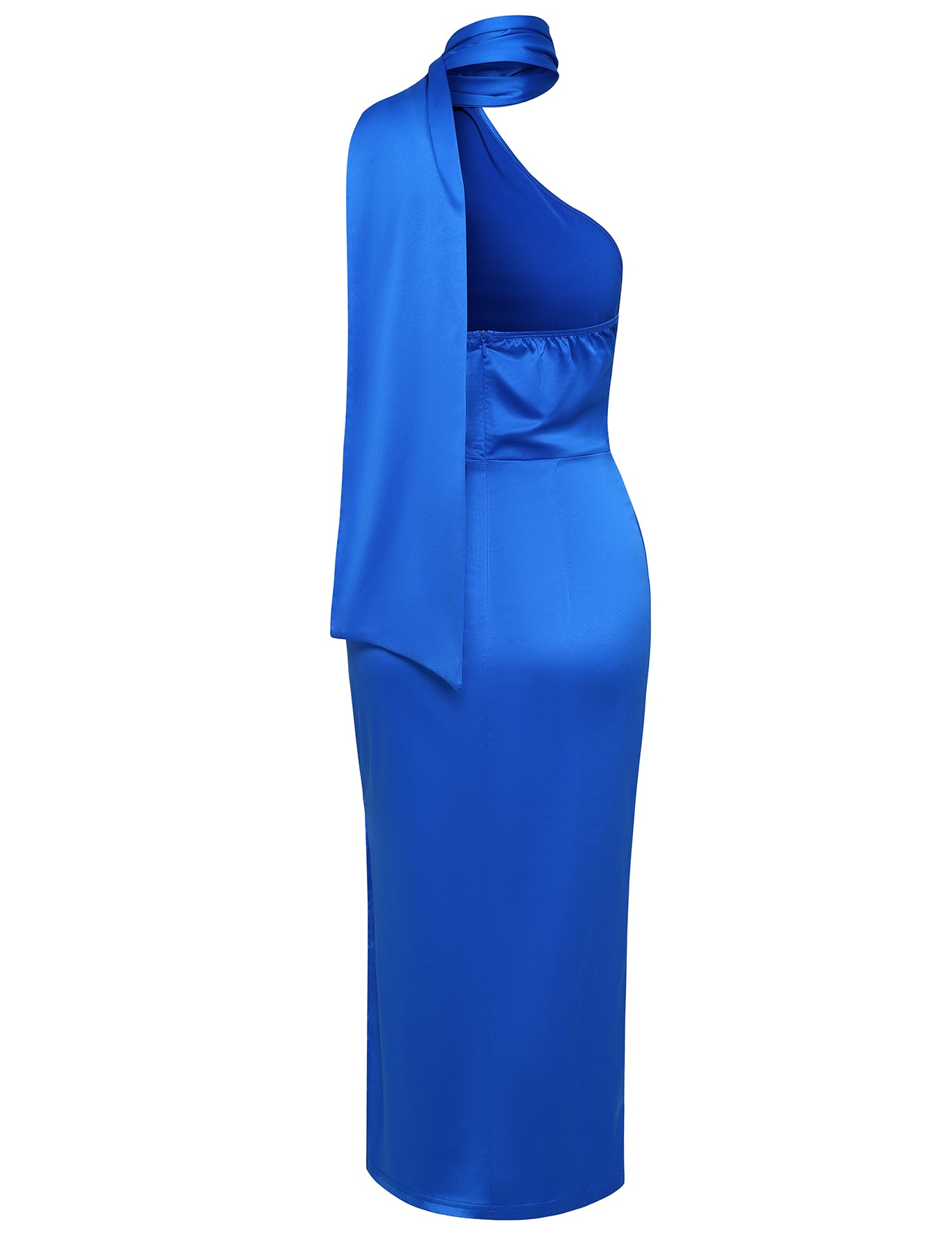 Home / Dress / Women Mock Neck Scarf Asymmetrical Midi Dress Split Thigh