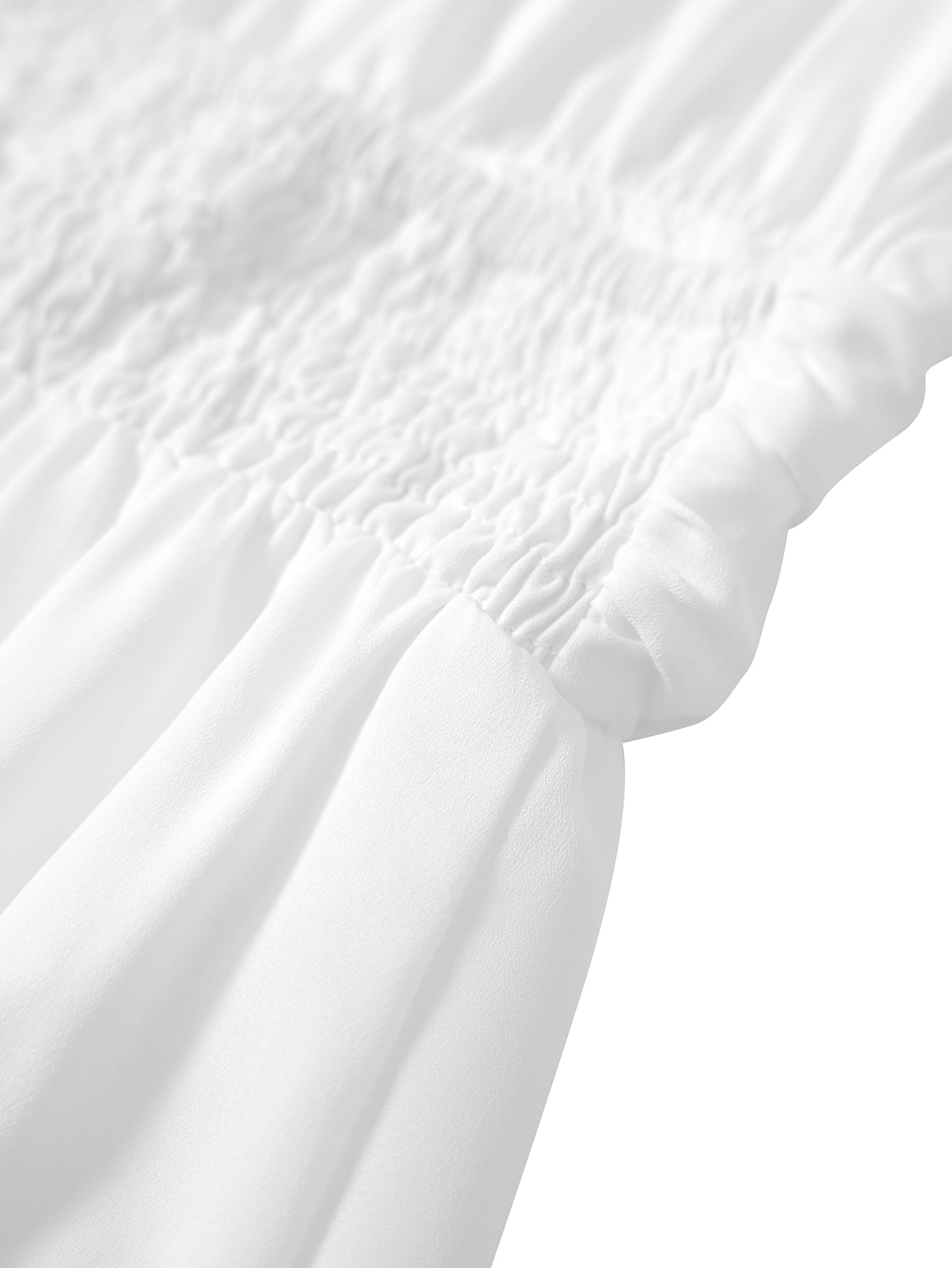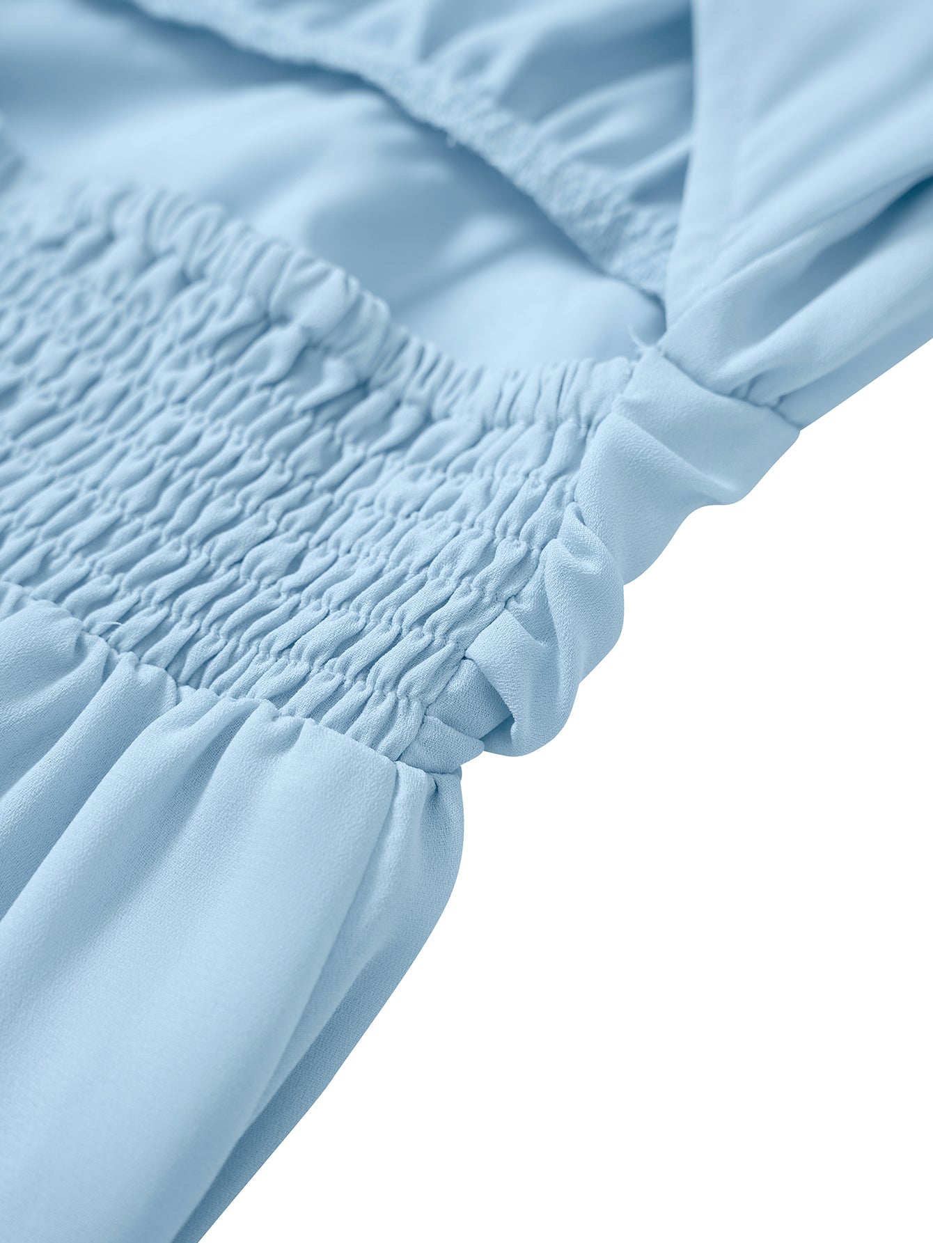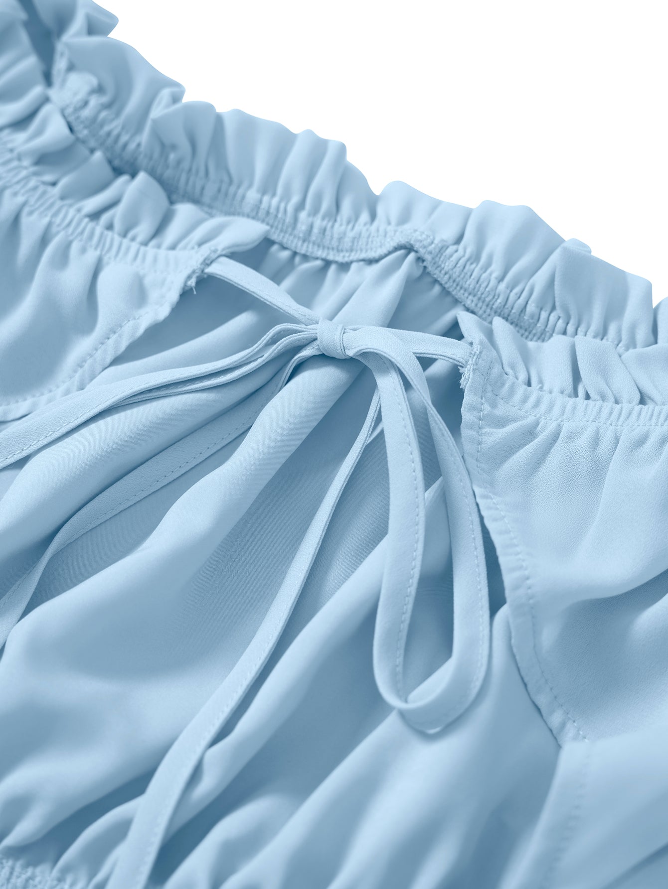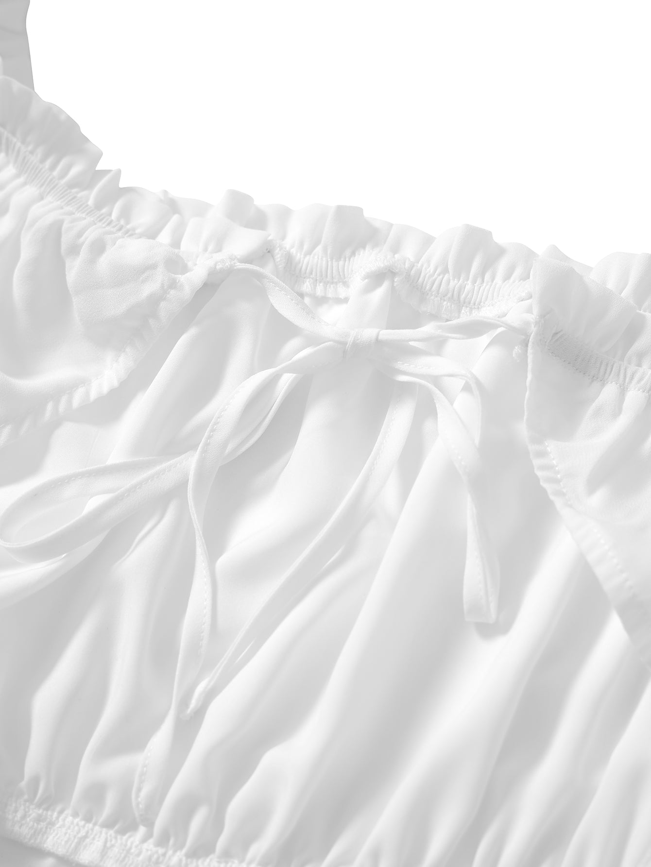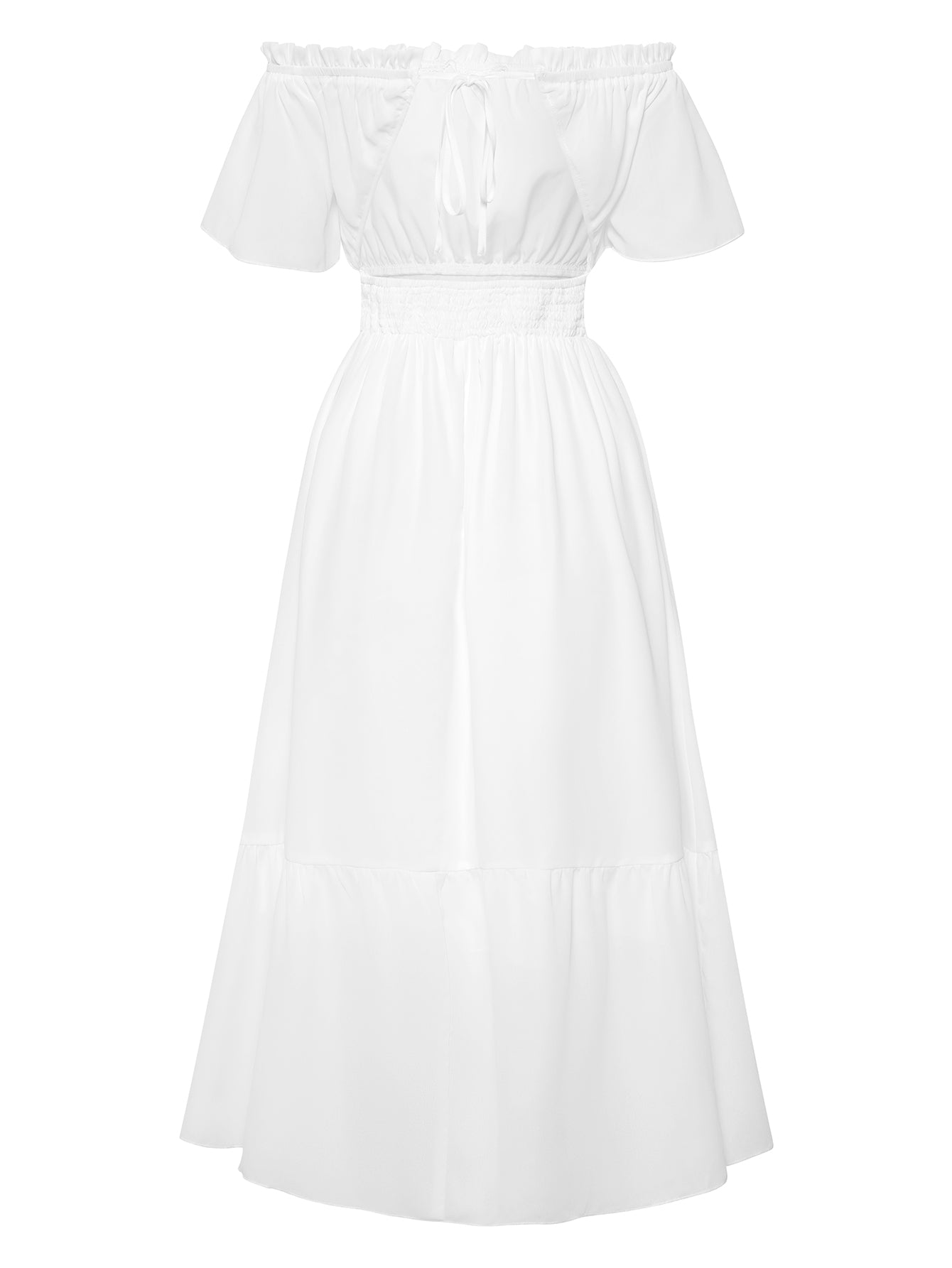 Features: Off Shoulder. Open Back. Tiered. Layered HEM.