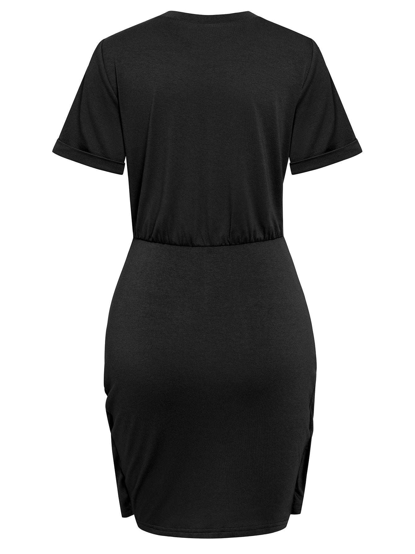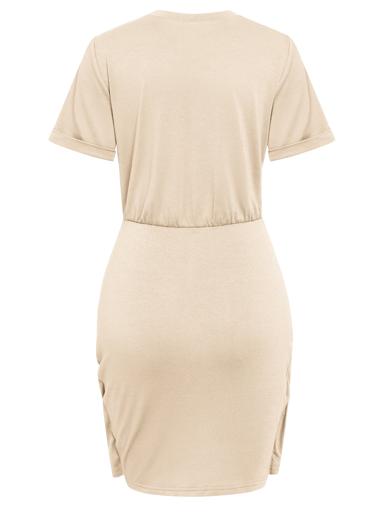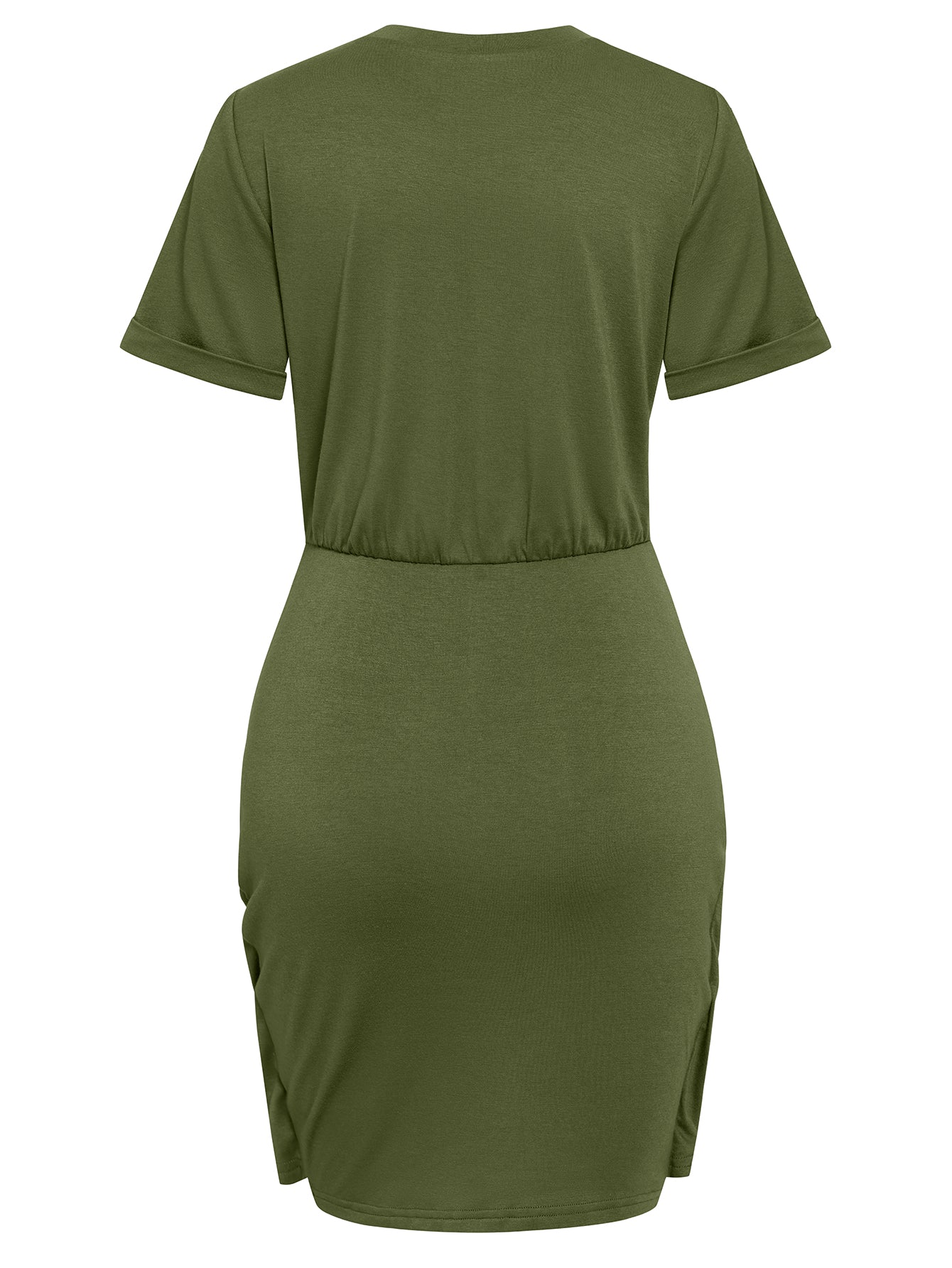 Home / Dress / Women Short Sleeves Twisted Knot Ruched Wrap Mini Dress