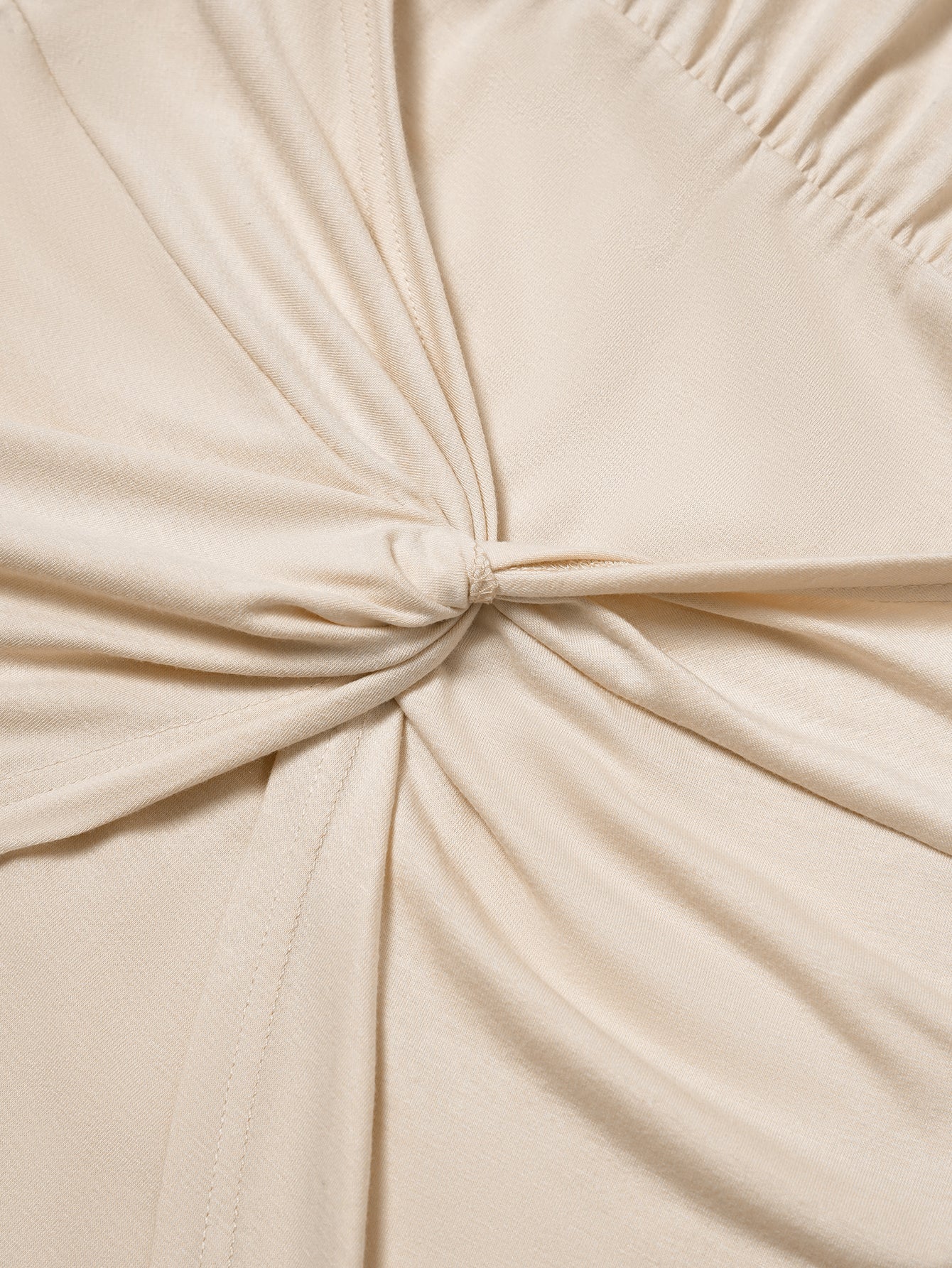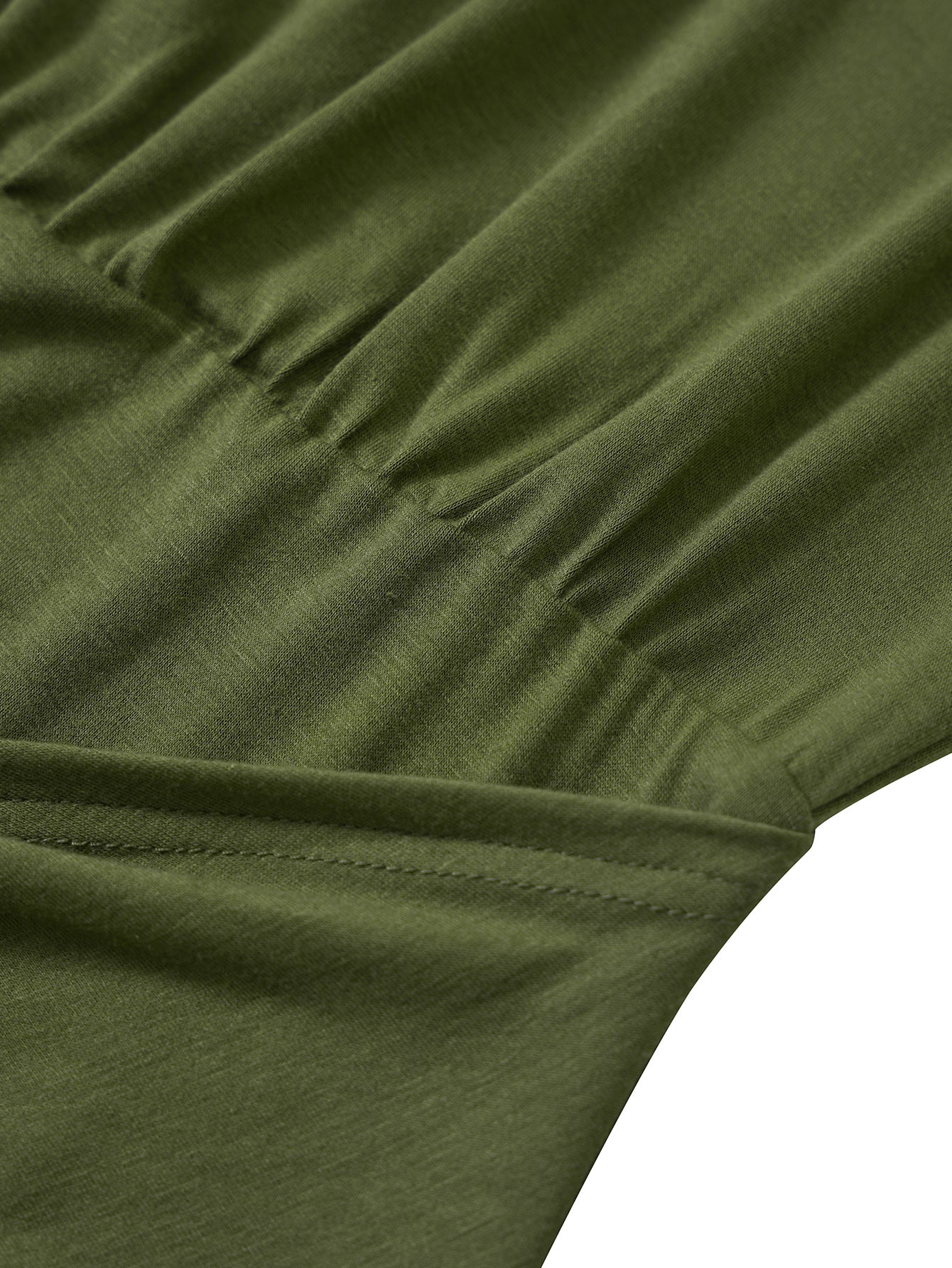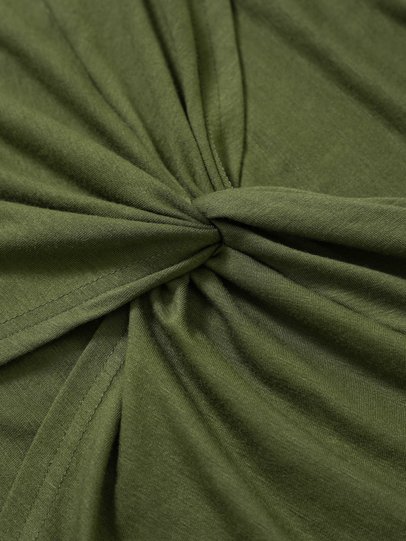 Home / Dress / Women Short Sleeves Twisted Knot Ruched Wrap Mini Dress
