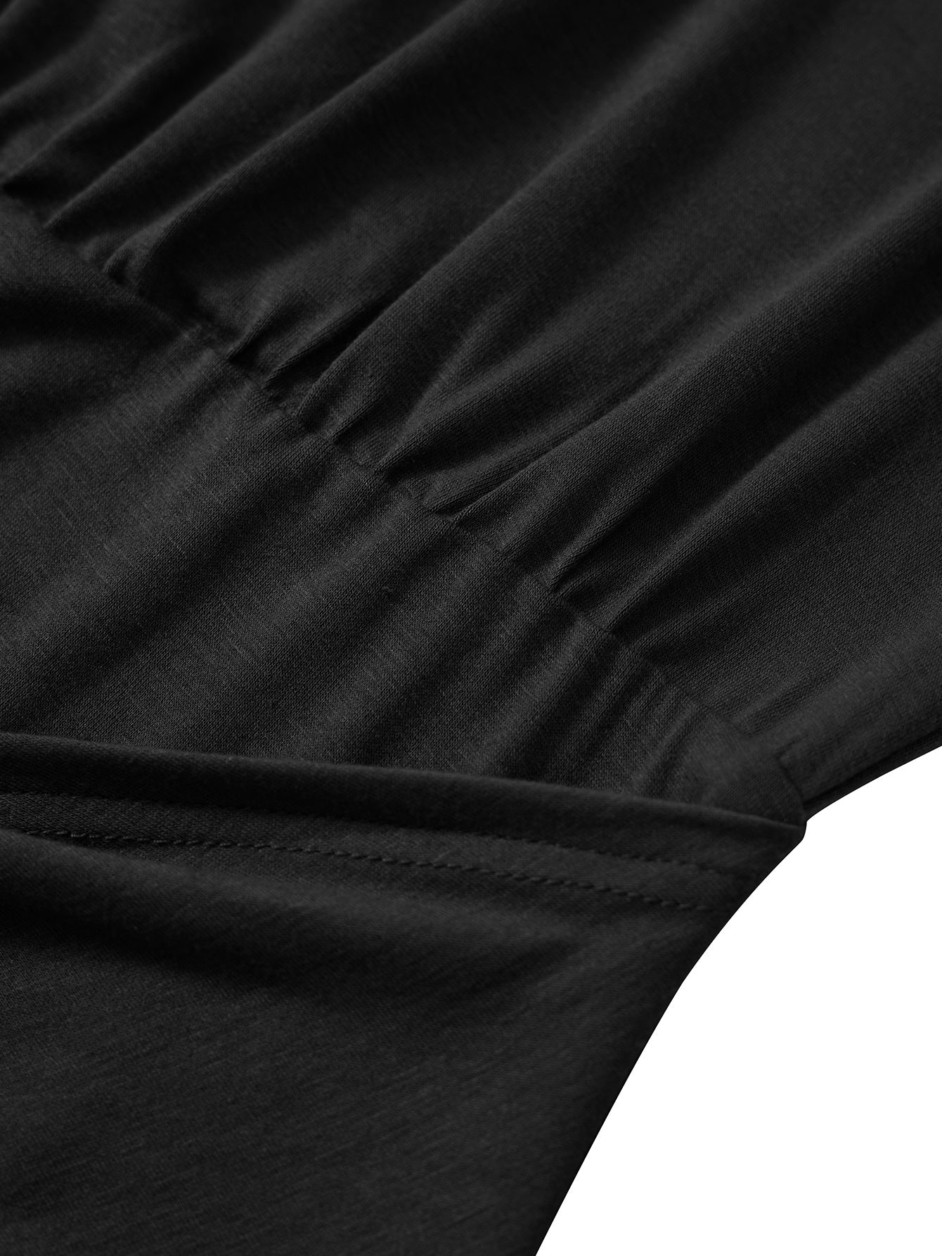 Women Short Sleeves Twisted Knot Ruched Wrap Mini Dress