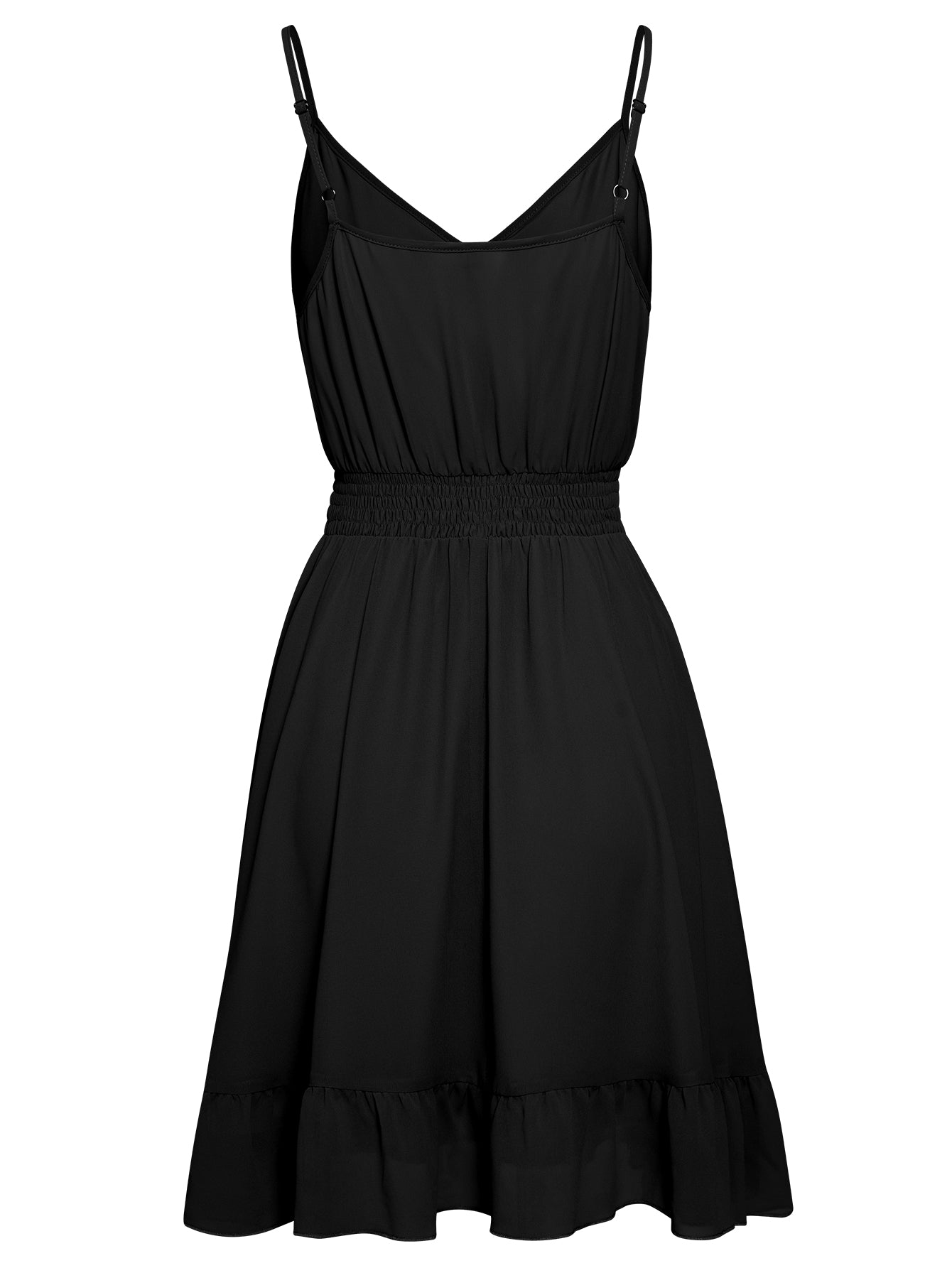 Features: Front Button Decoration. Slim Waistline. Ruffle HEM.