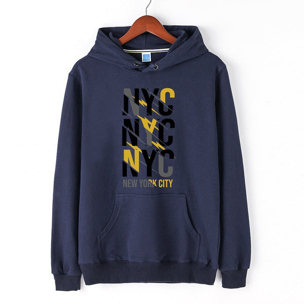 New York City Autumn Winter Cotton Hoodie for Men Letter NYC Print Pullover