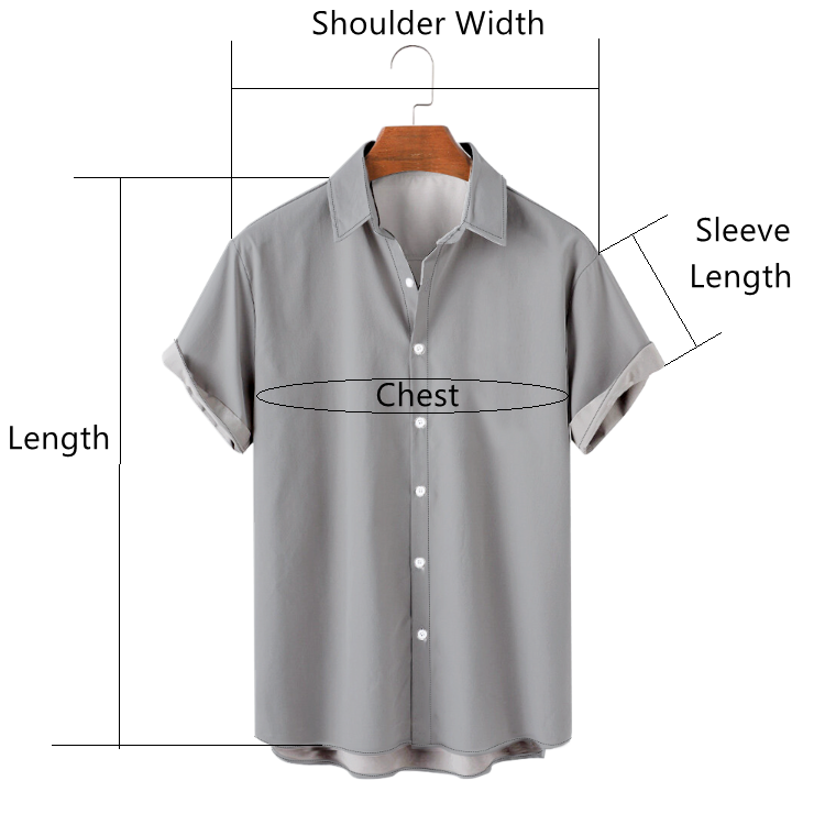 Size Chart for Men's Shirt Size Chest Shoulder Width Length Sleeve Length 2XS 35.4" 17.5" 27.5" 9.4" XS 38.6" 18.3" 28.3" 9.6" S 41.7" 19.1" 29.1" 9.8" M 44.9" 19.8" 29.9" 10.0" L 48.0" 20.6" 30.7" 10.2" XL 51.2" 21.4" 31.5" 10.4" 2XL 54.3" 22.2" 32.3" 10.6" 3XL 57.5" 23.0" 33.1" 10.8" 4XL 60.6" 23.8" 33.8" 11.0" All measurements are in inches. -
